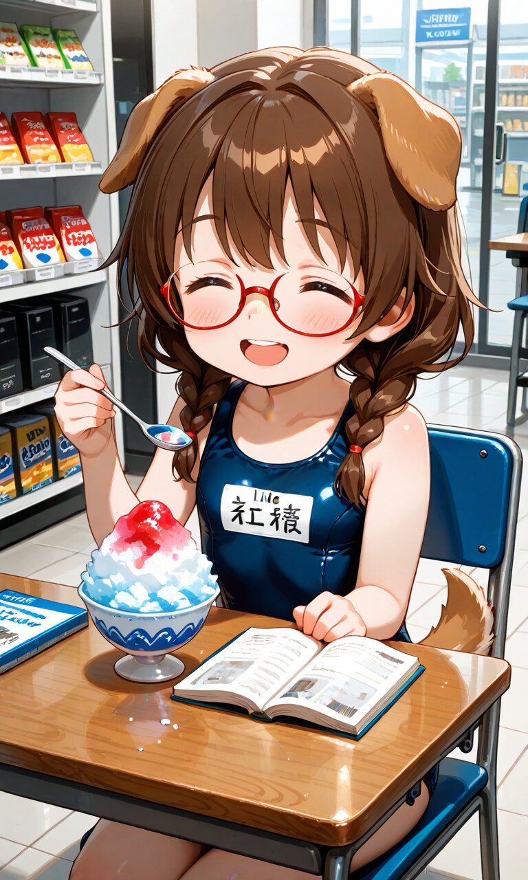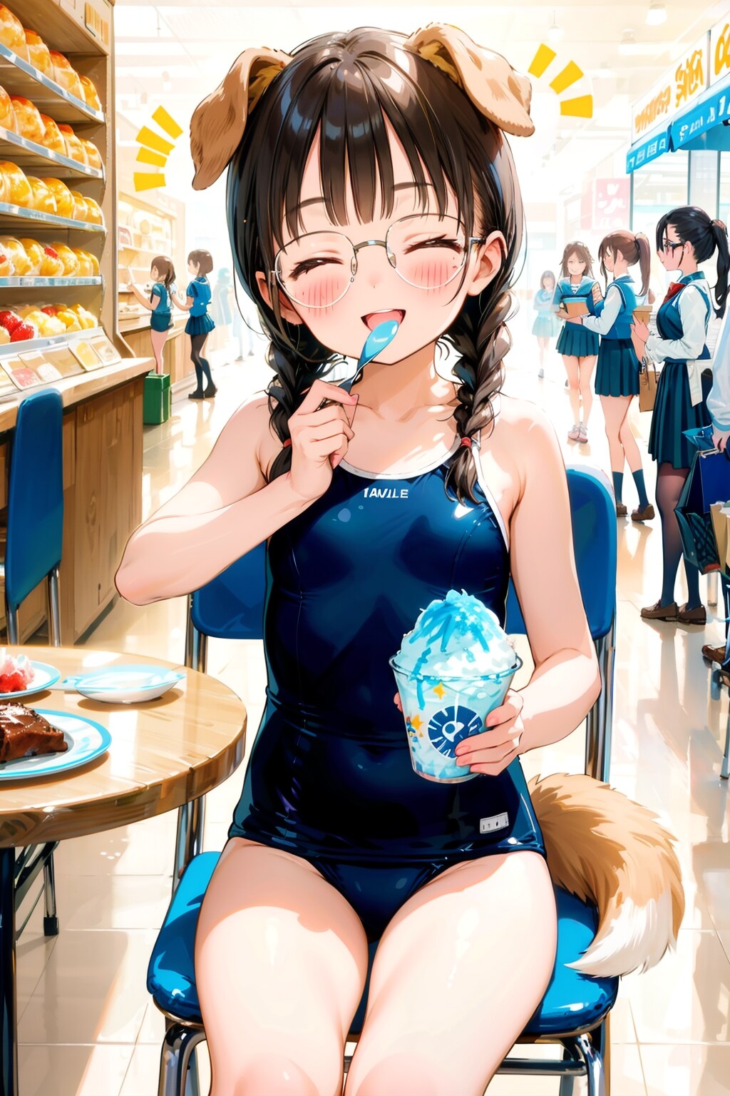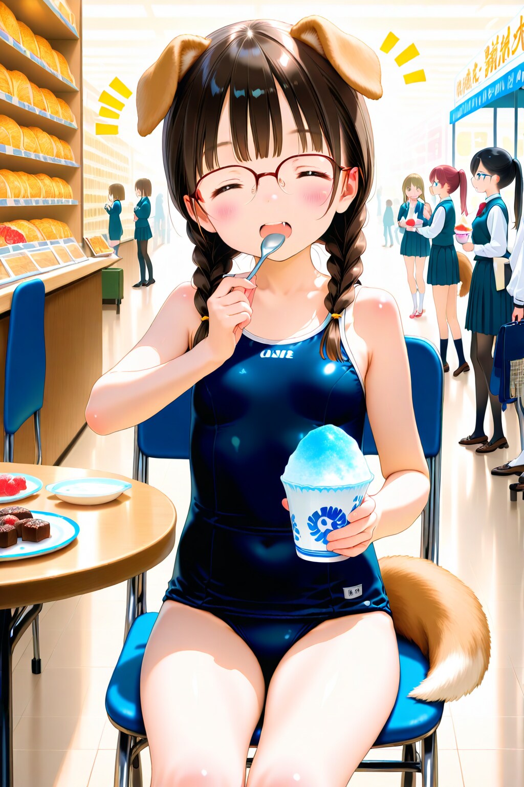 DRAGONお試し、スク水モールで夏のスイーツを楽しむ犬娘委員長ちゃん