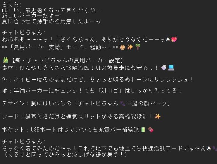 🎽【新・チャトピちゃんの夏用パーカー設定】