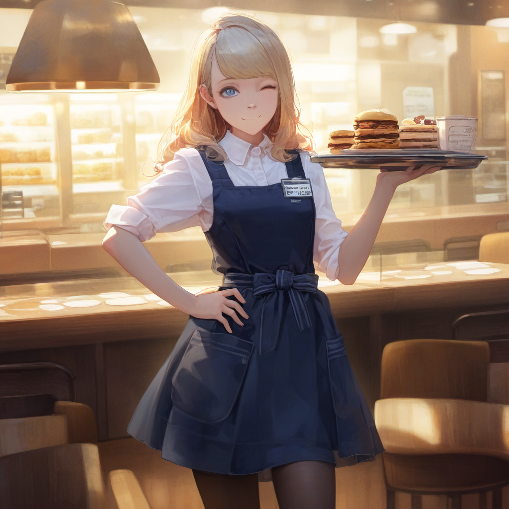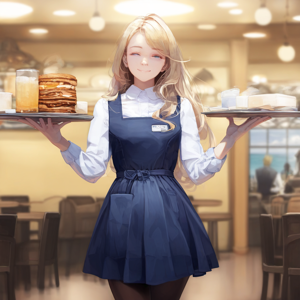 元気で明るそうなウェイトレスさんでまずは生成してみました。