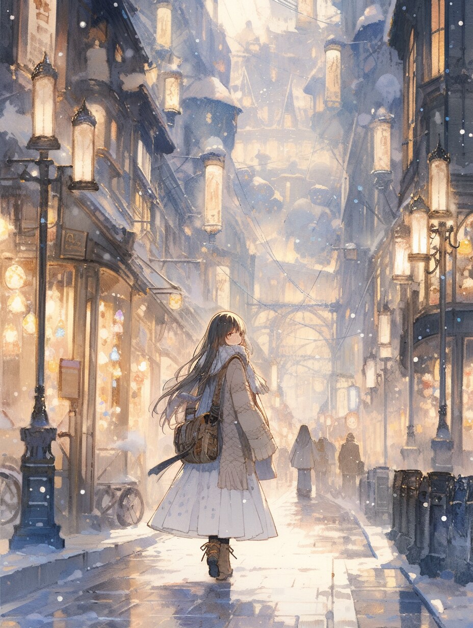 雪が降る冬の街並みです❄️個人的に気に入ってます。