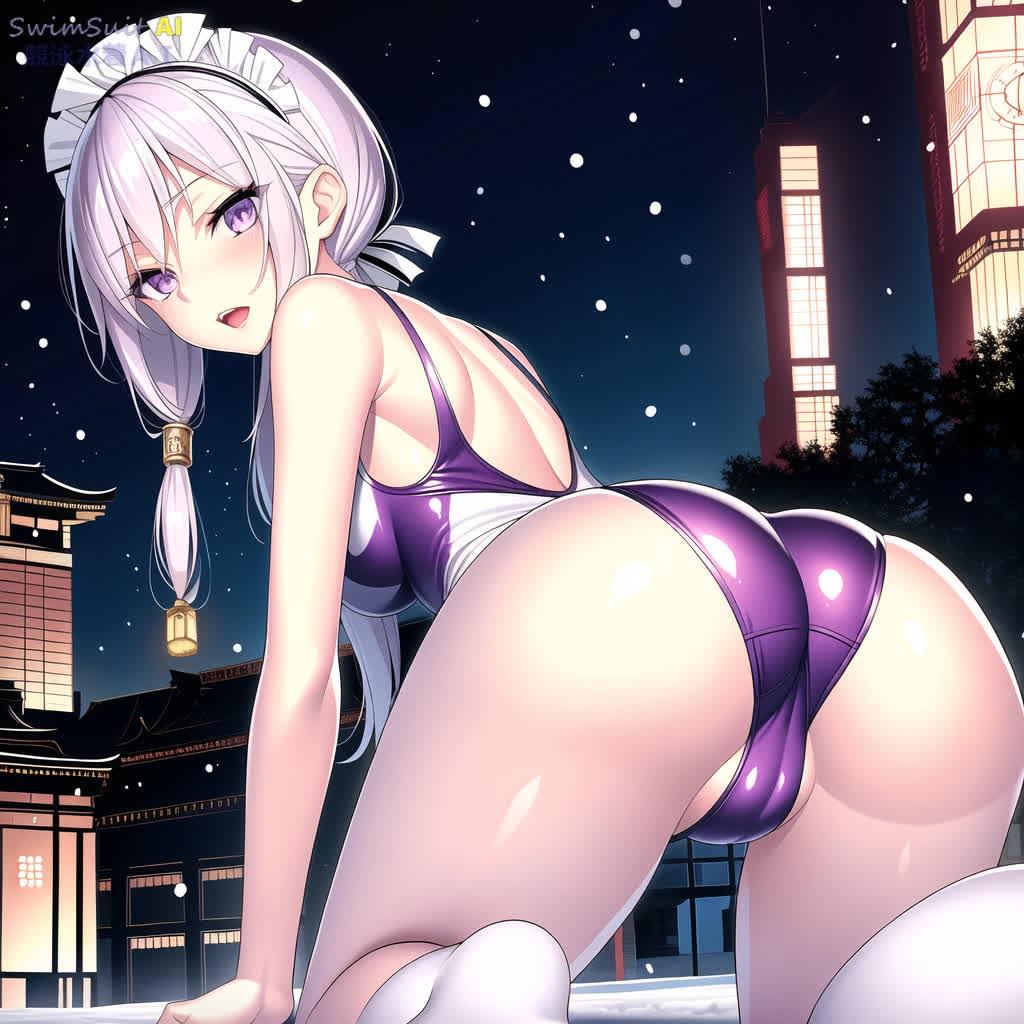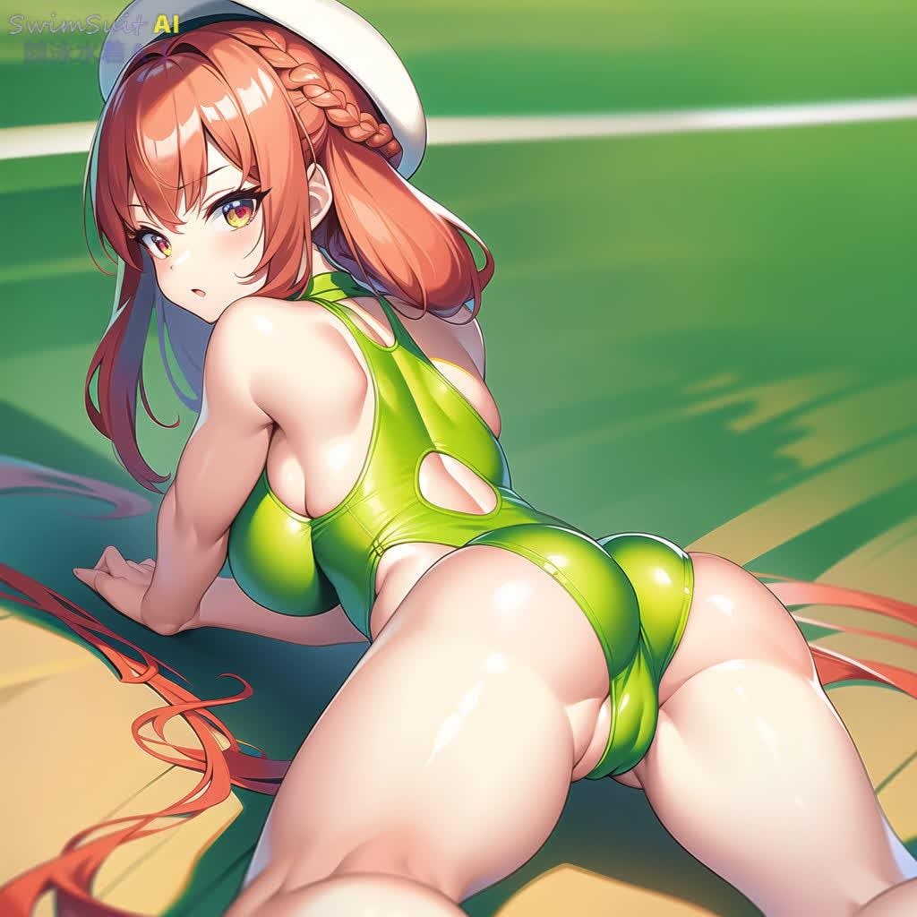 中華風のカンフー妖怪さん風競泳水着の彼女と