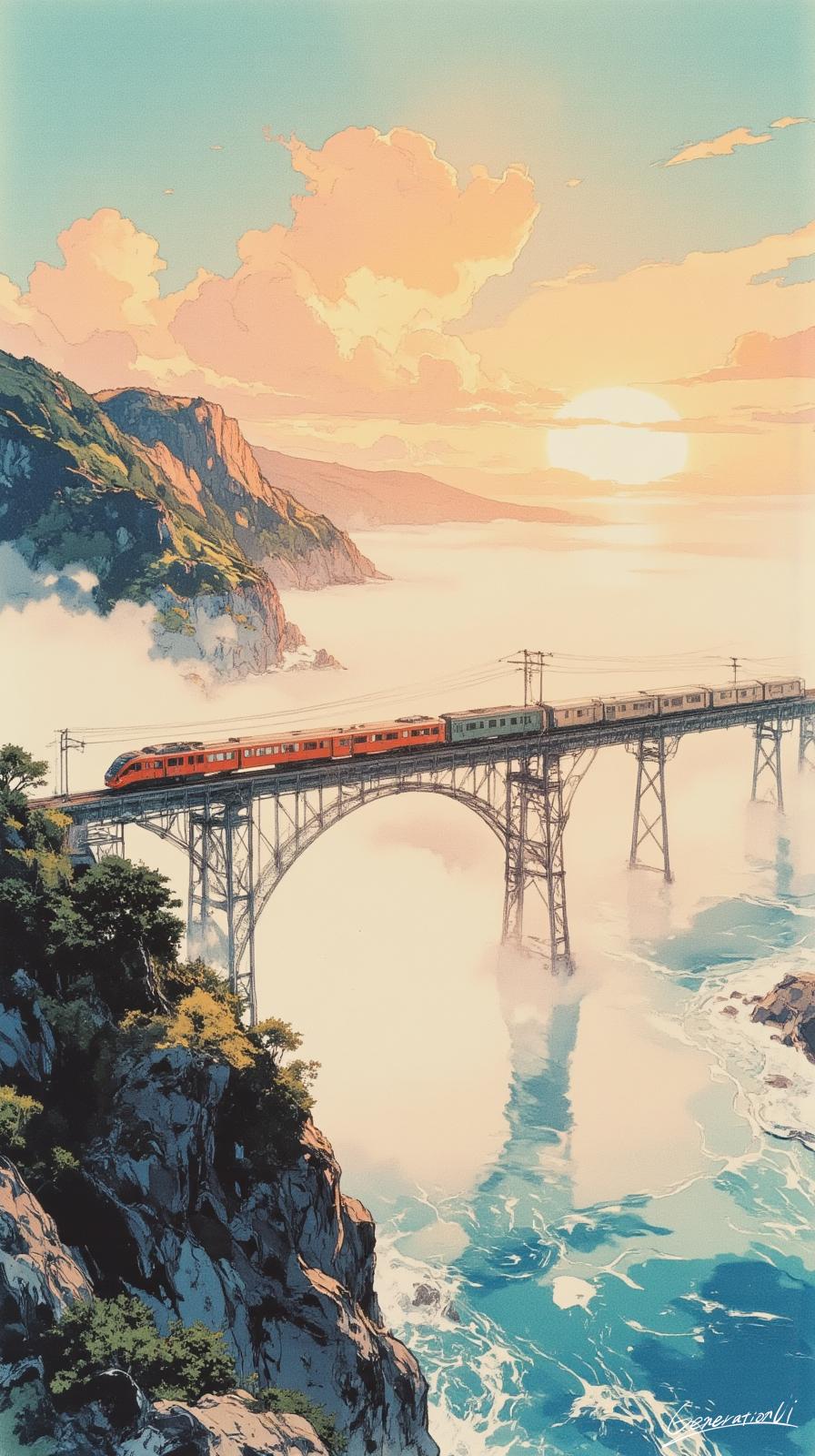 朝焼けに染まる空中鉄路/スマホ壁紙アーカイブ
