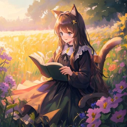 読書する猫耳少女