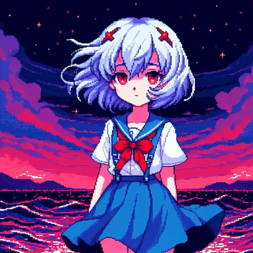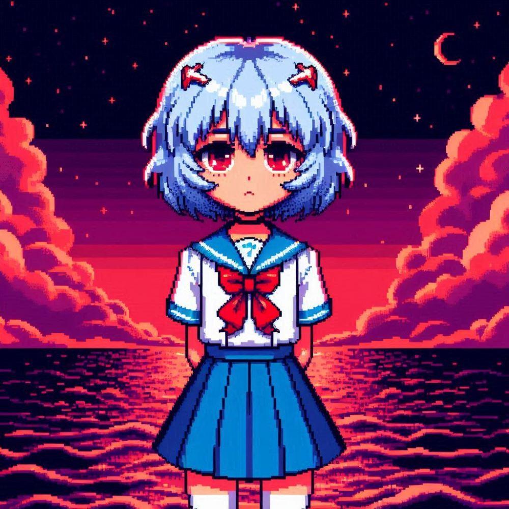 月夜のボブカット制服コスプレ人妻&ドット絵
