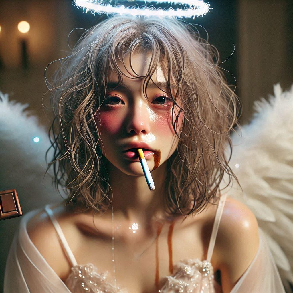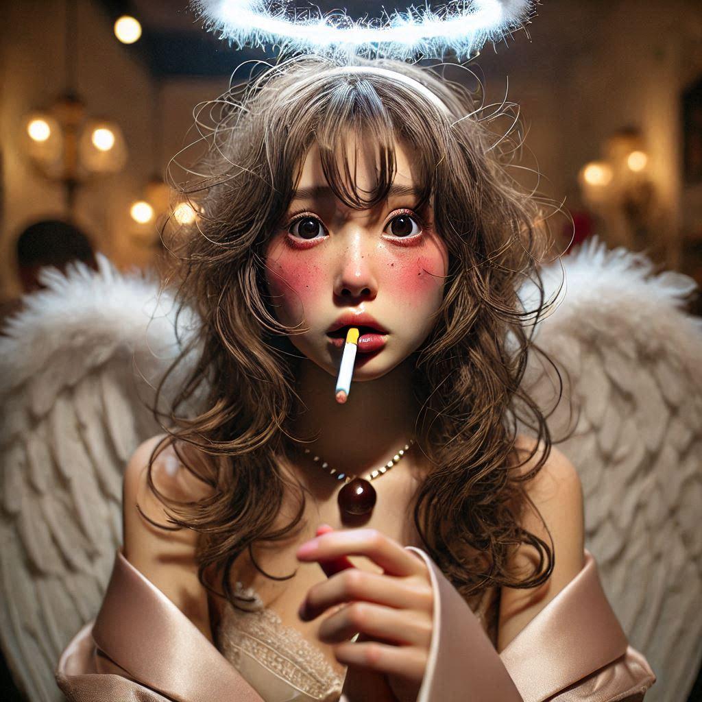 ところが、やさぐれ慣れていない天使。ウィスキーボンボンで泥酔してしまいました。タバコも天使の綺麗な肺には刺激が強すぎたようでむせ返ってしまいます。