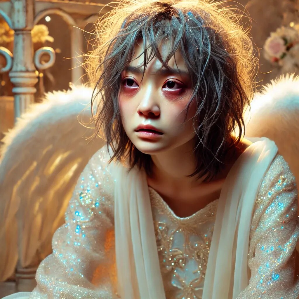 二日酔いで痛む頭を抱え、咳き込みながら天界に帰る天使