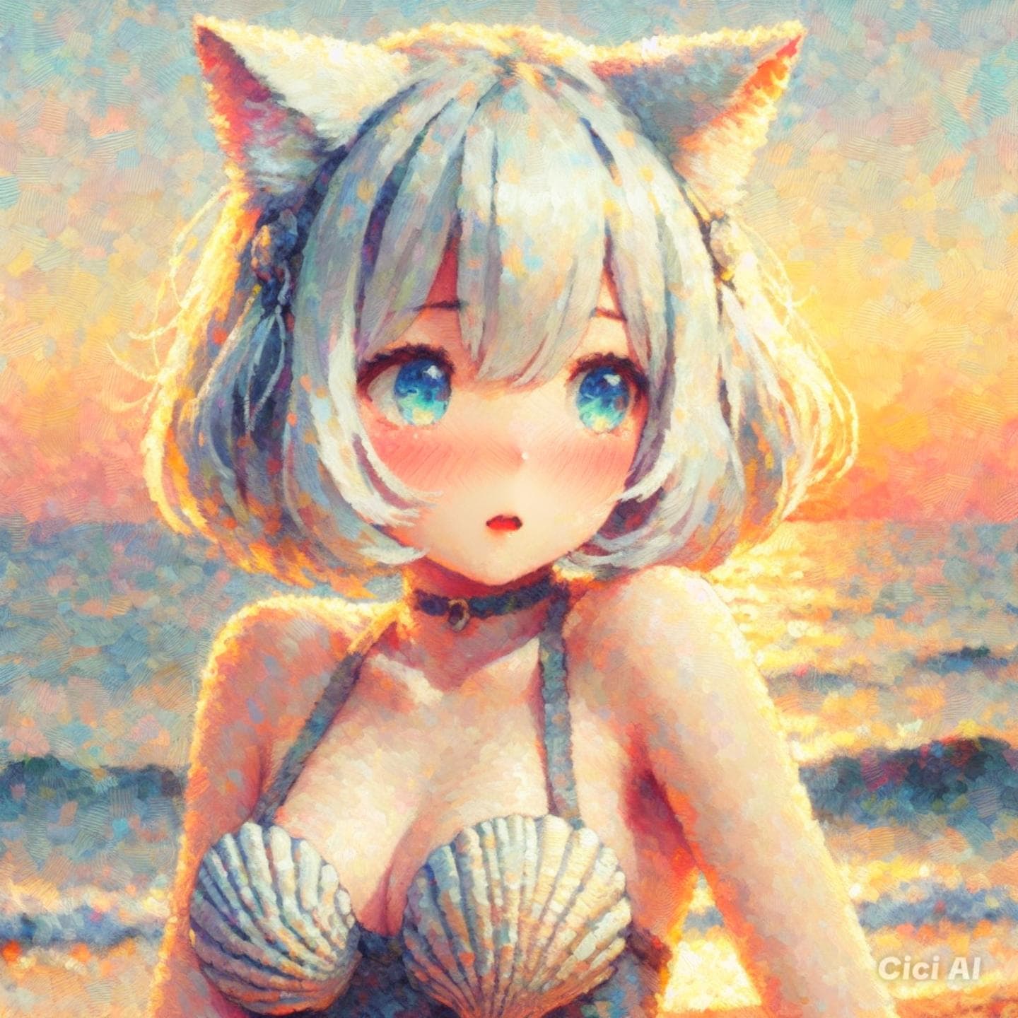 貝殻ビキニを着て頬を染める徒然シズク