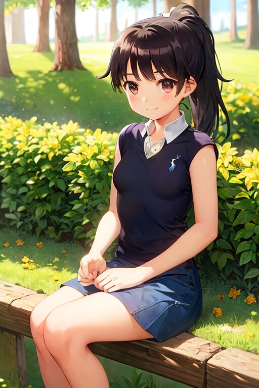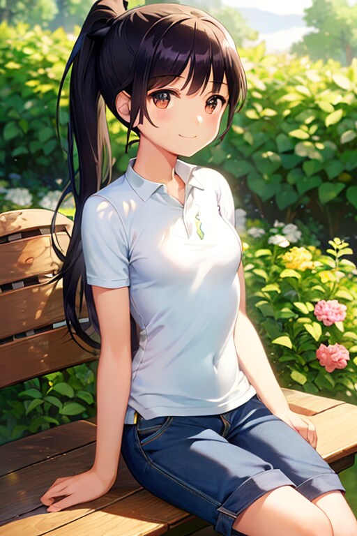女の子はいつもの黒髪ポニーの茶瞳っ娘(お目々奇麗Ver)