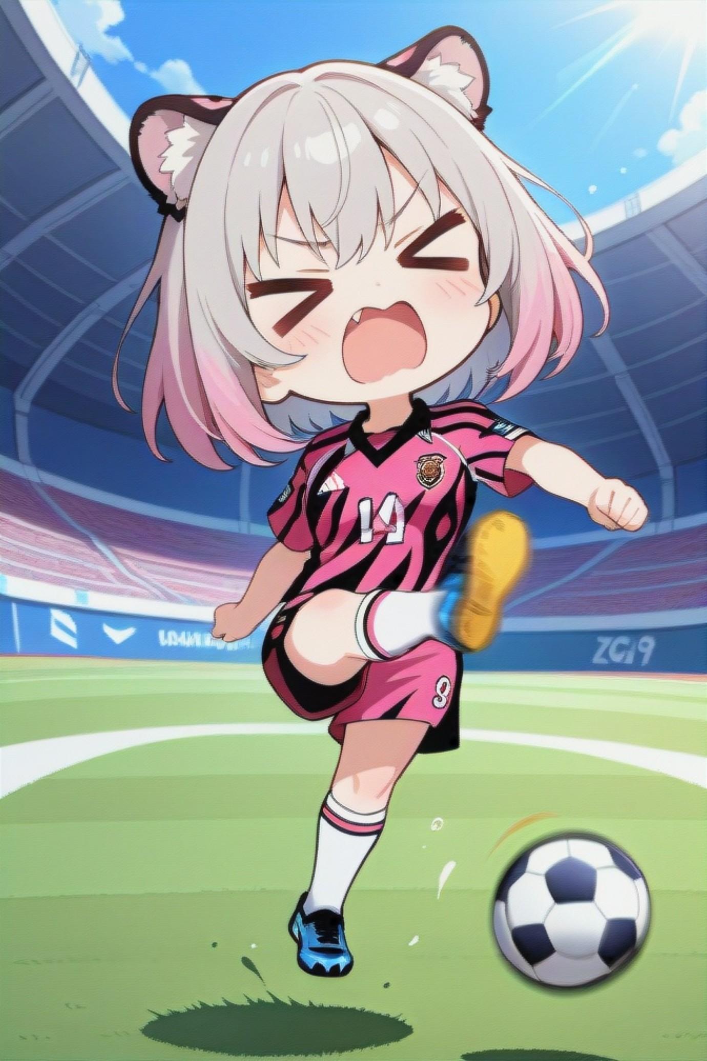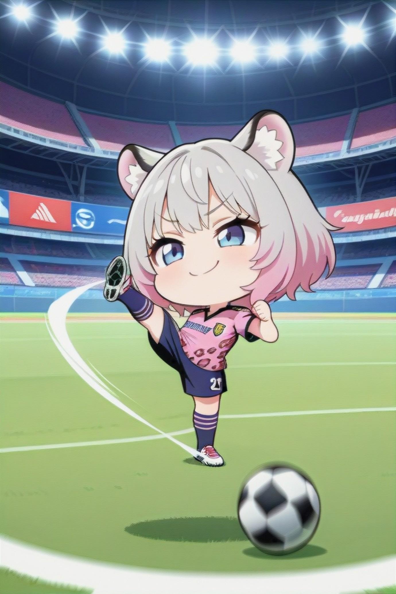 サッカーをする銀髪ちゃん