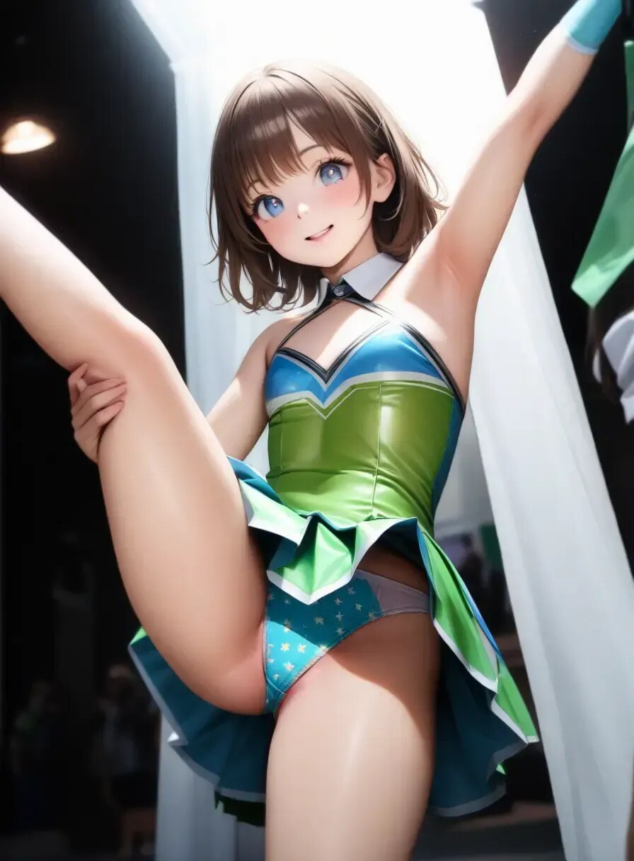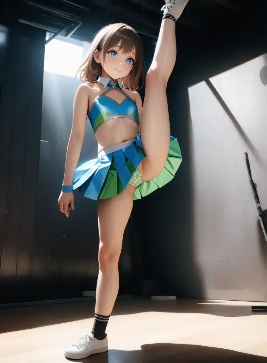 (standing,doing a high kick,leg up higher,ballet kick,i shaped kick,standing side split:1.5),stretching one leg straight