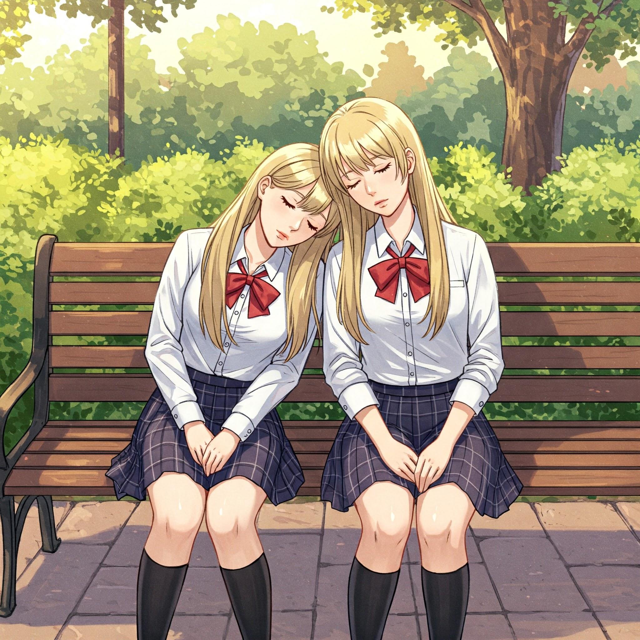 自分の肩にもたれた相手の頭に、更に自分の頭を乗せて眠るあるある構図(笑)