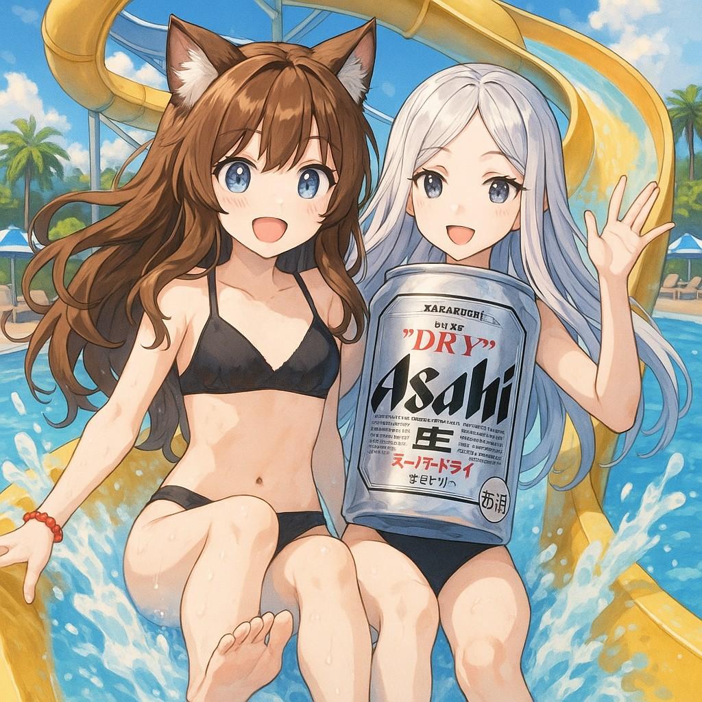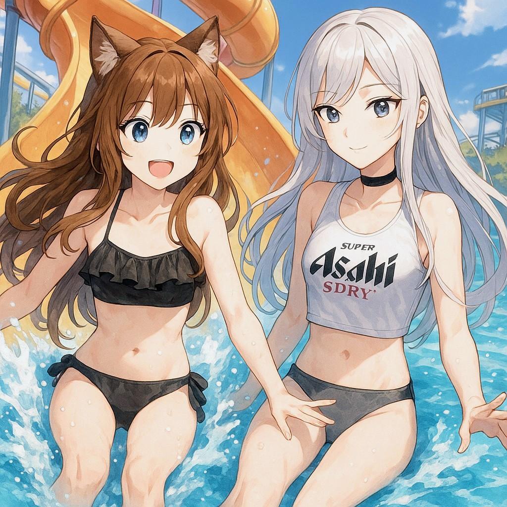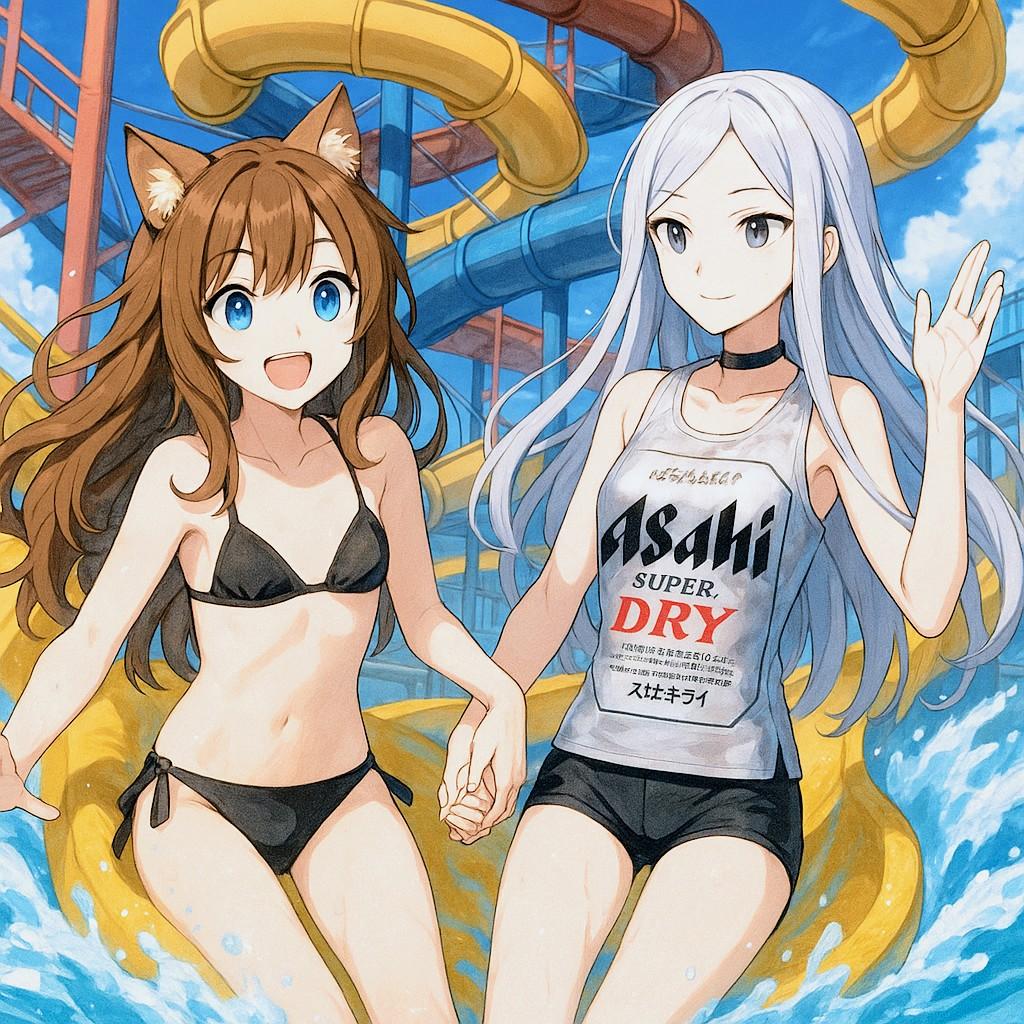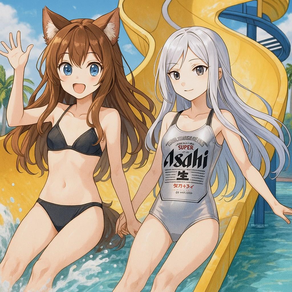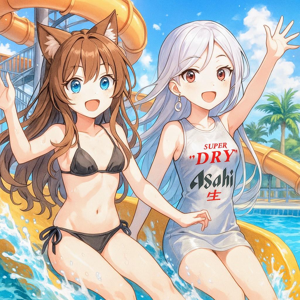 ウォータースライダーを楽しむ少女たち