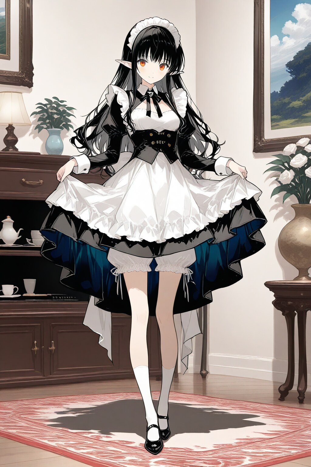 スカートをたくし上げるメイドさん を 「エルフのメイドさん」にしてみた。(手抜きです)