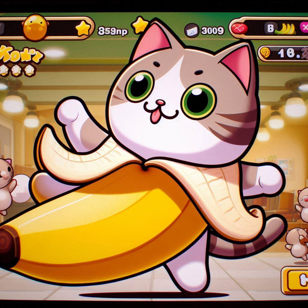 バナにゃん→バナナと猫が融合合体した新生物。バナナは外すことが出来る(Banana loose)
