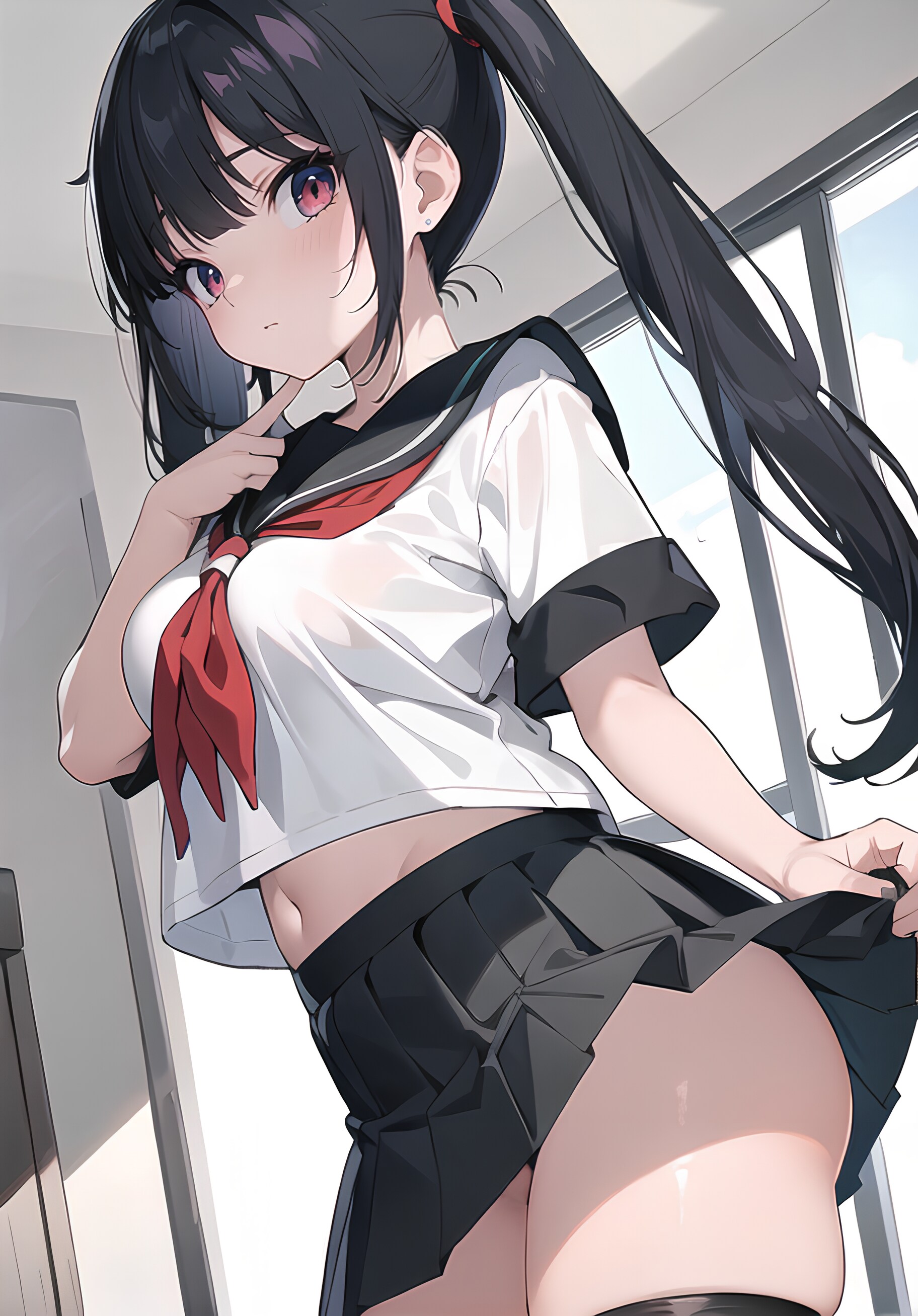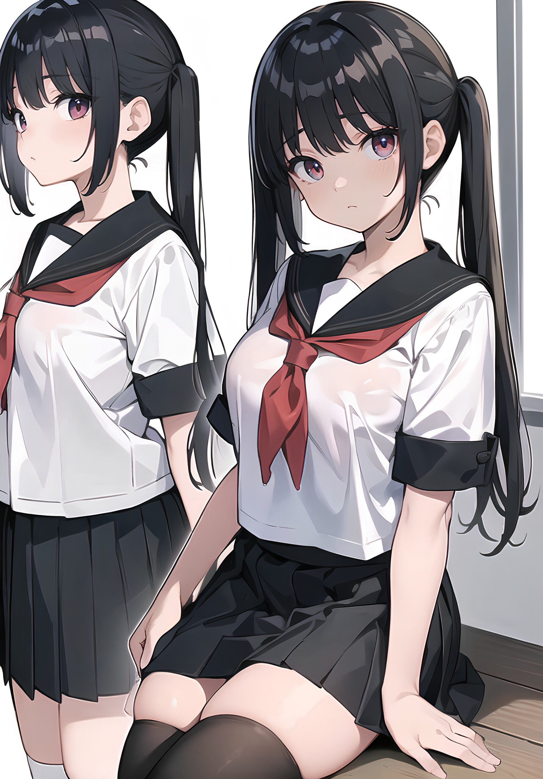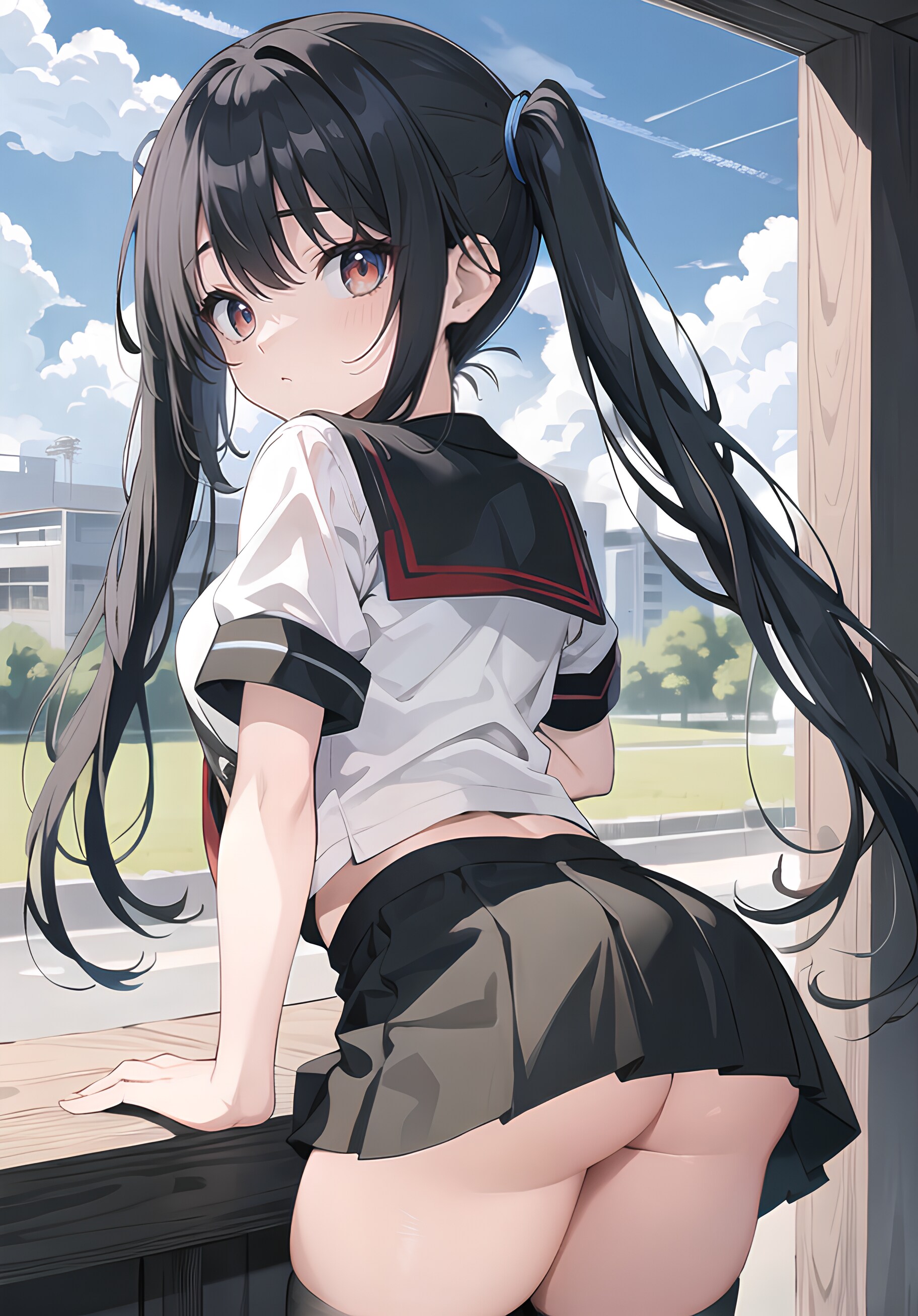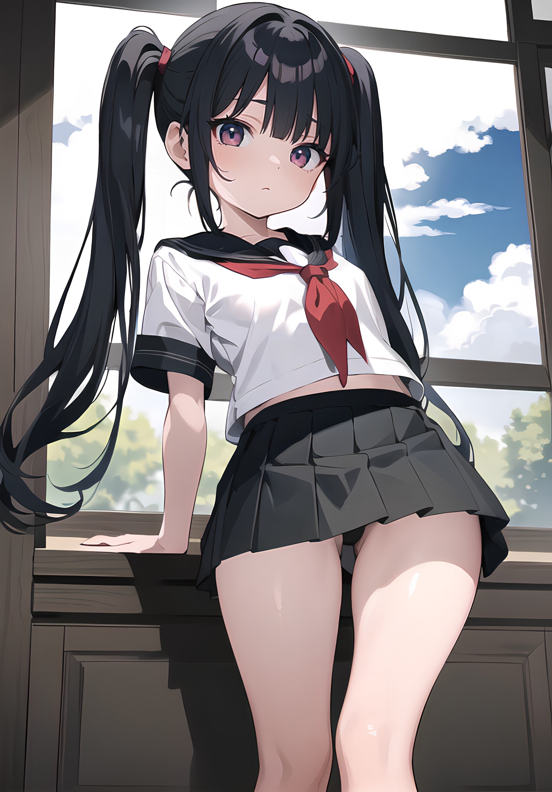 女の娘♪ ミニスカ制服JK 黒髪ツインテール♡ 2(12枚)