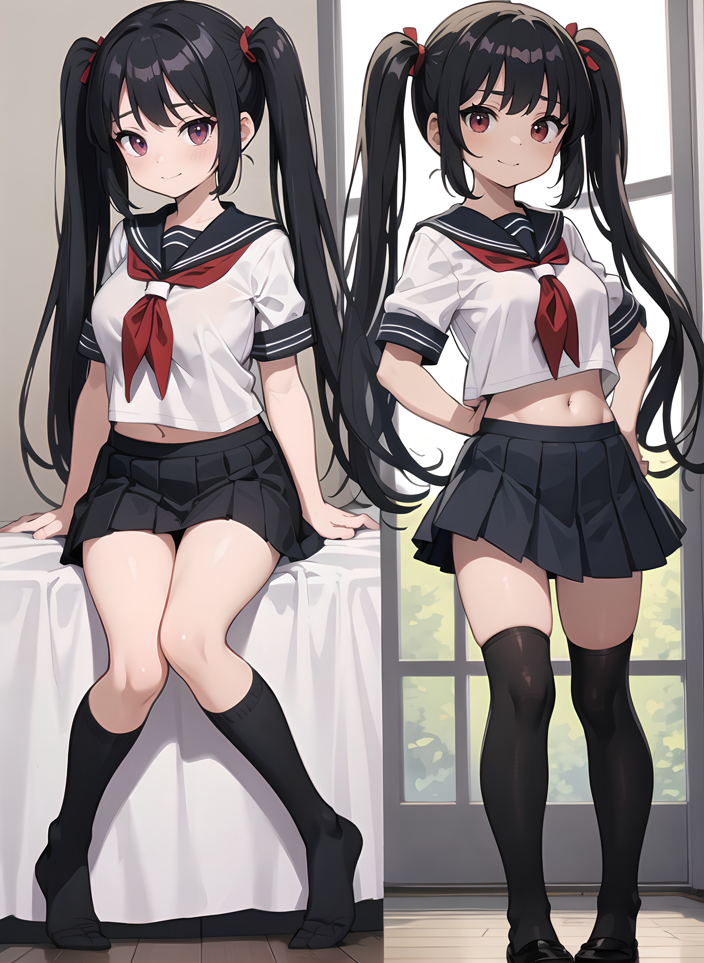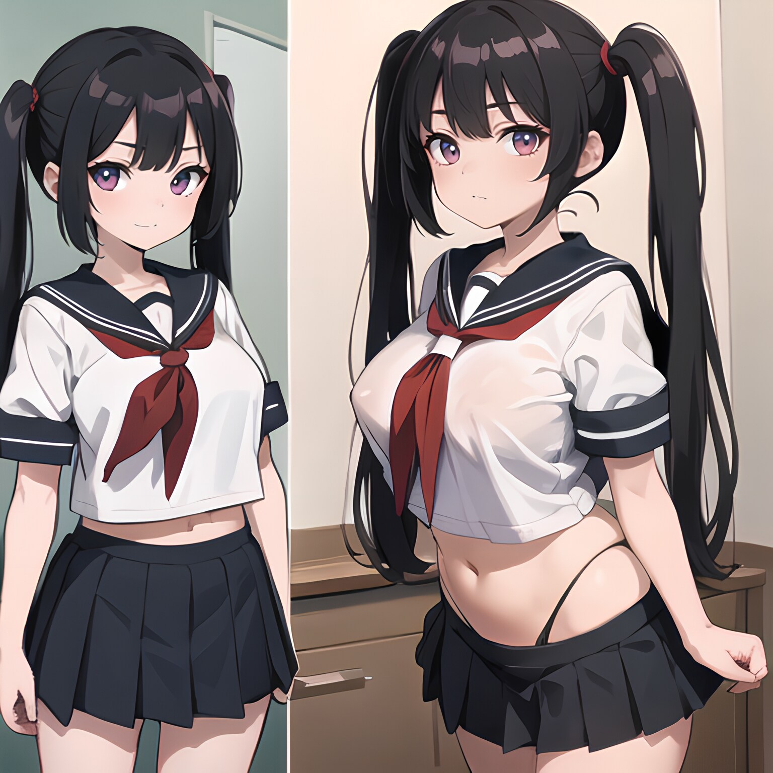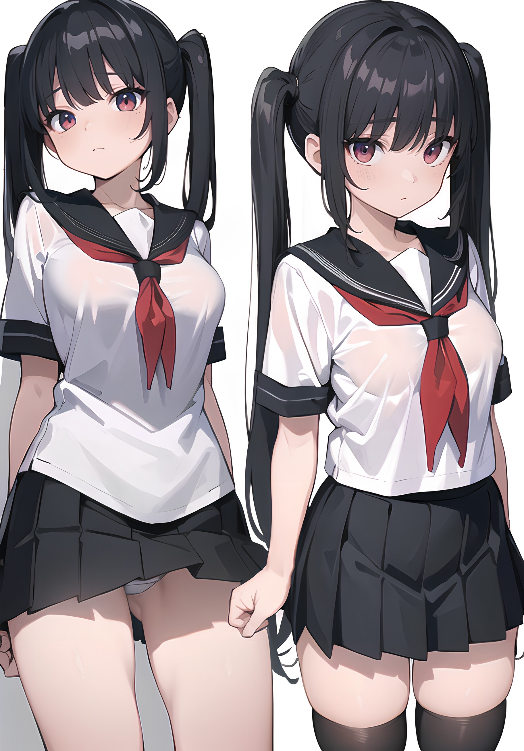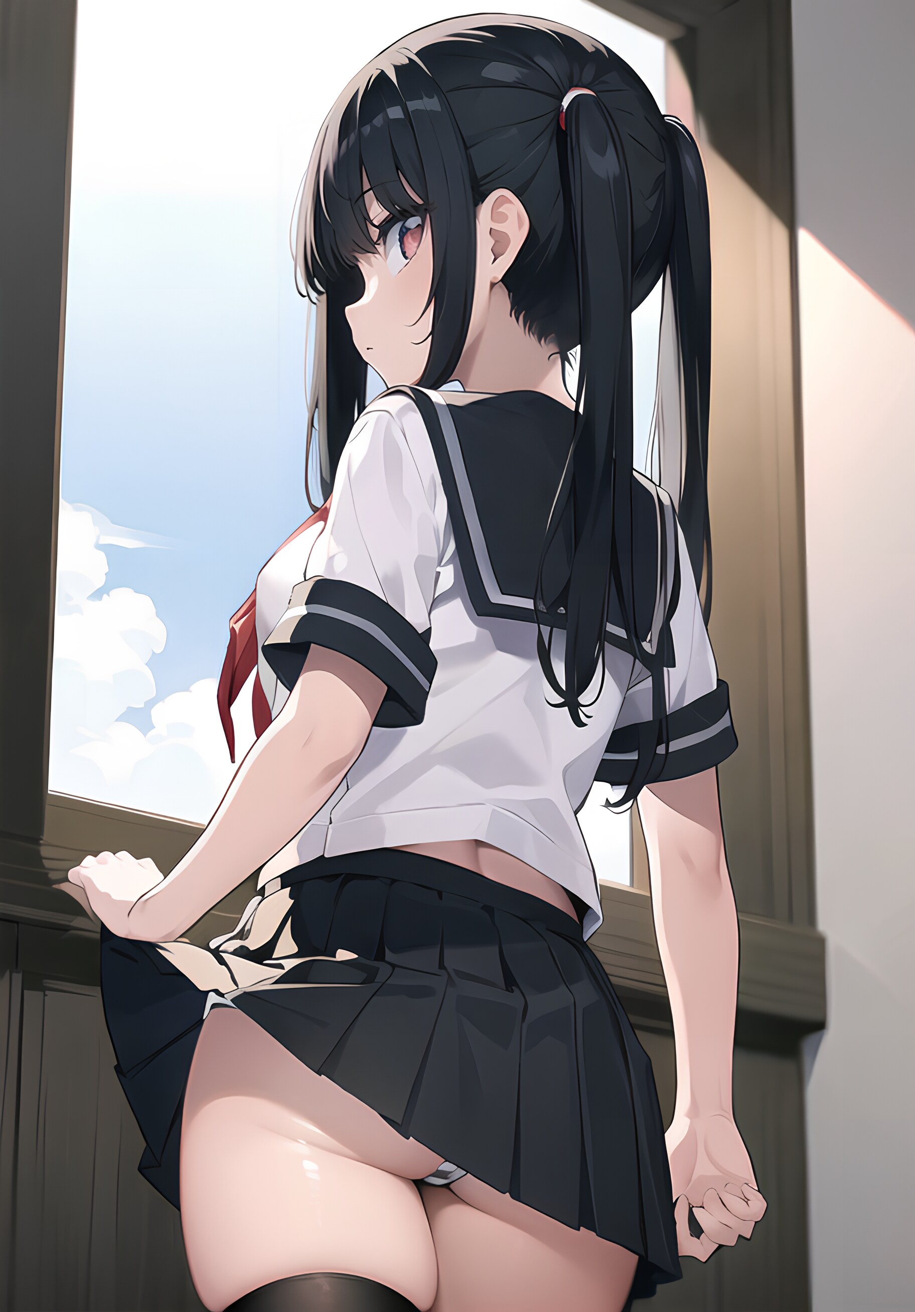 女の娘♪ ミニスカ制服JK 黒髪ツインテール♡ 2(12枚)