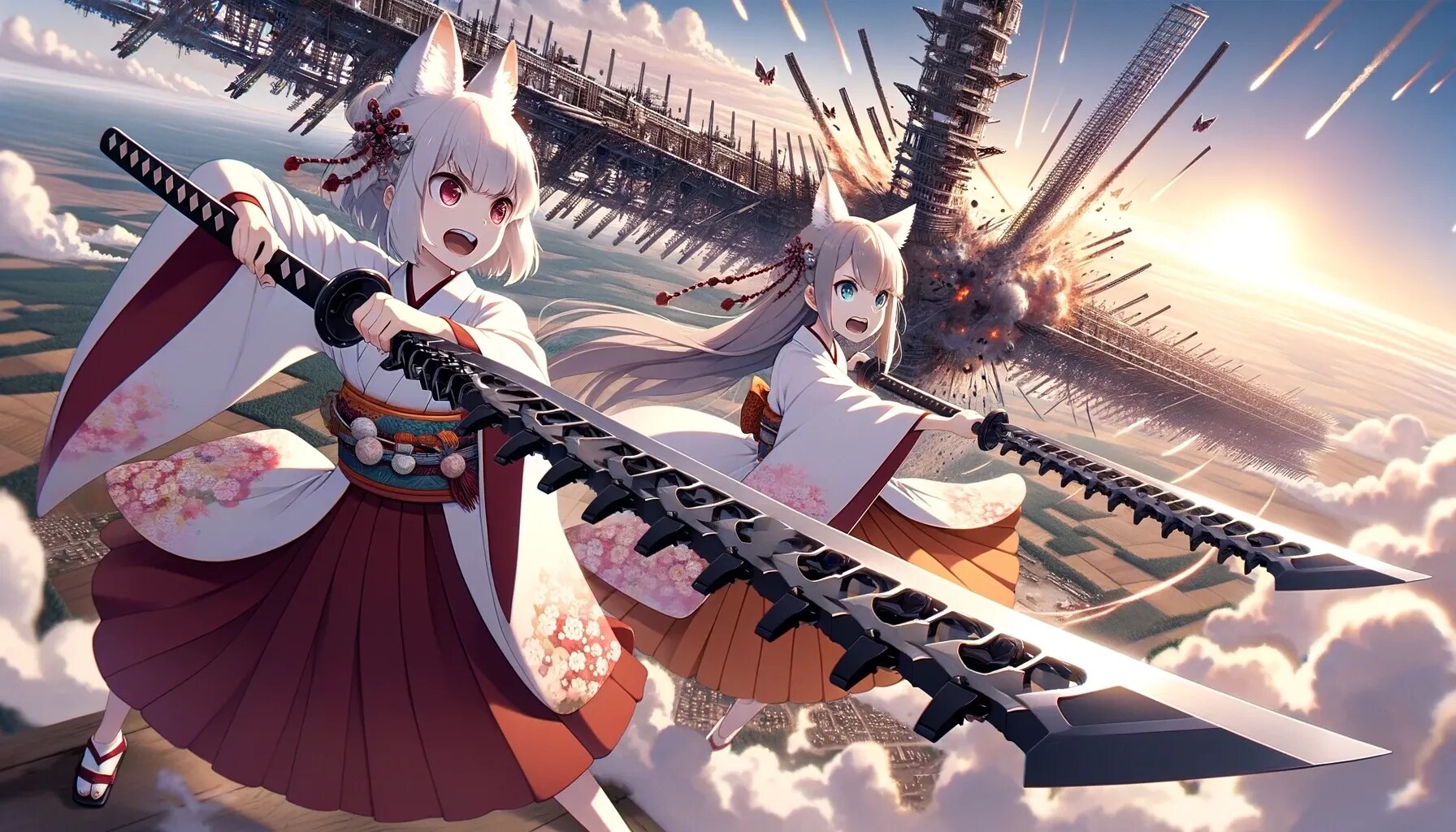 「姉さん、待って!」強靭な腕力を持つ妹が、刃こぼれ一つない大きな刀を手に、姉のもとへと駆けつけていた。