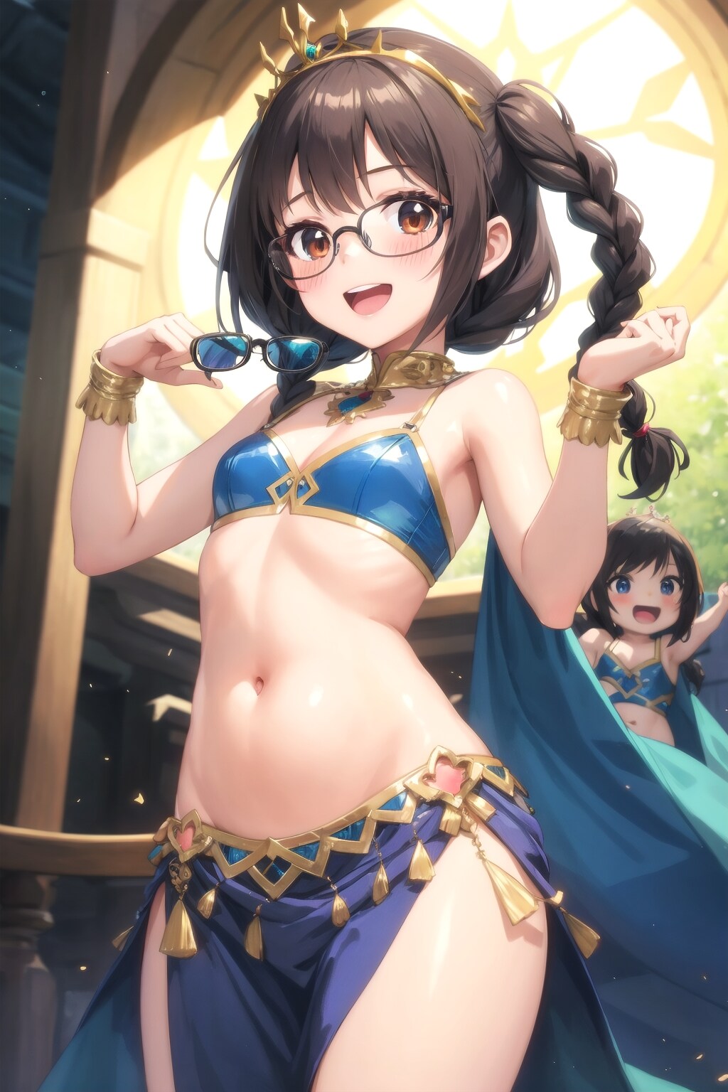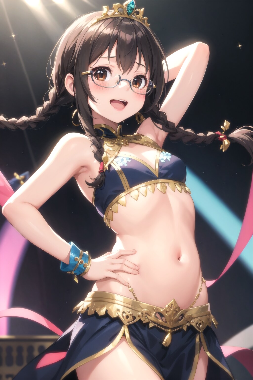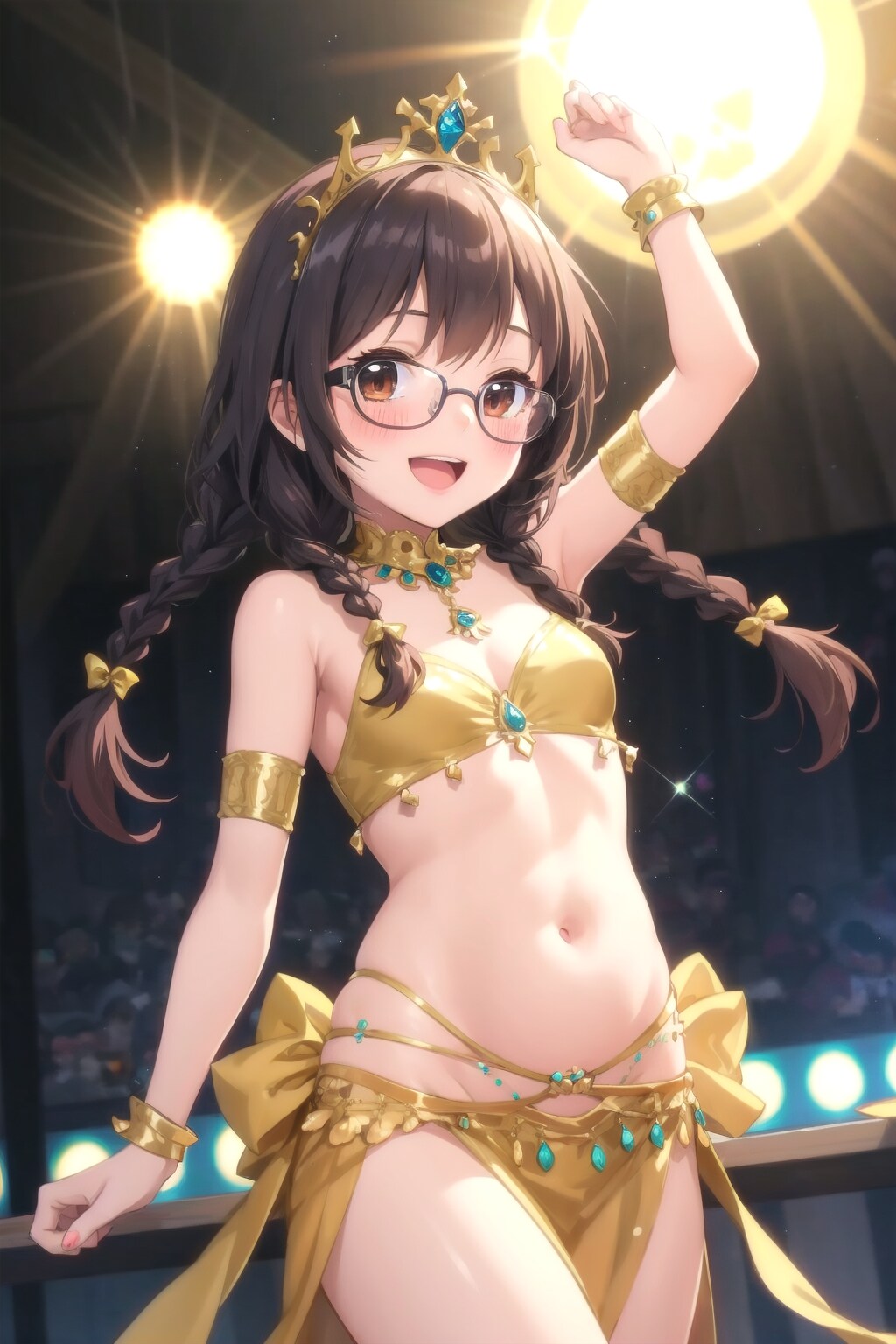 ダンシング!企画参加投稿、うさ耳ではない普通のベリーダンス衣装で今回は踊っている委員長ちゃんです。はべはベリーダンスの時と違いV4B直の画像がメインですがこれには理由があって、VEGAで生成する時、座ってるときには問題のなかった委員長ちゃんの幼児化プロンプトが踊ってる時というか座ってない時にはほとんど効かないという困った現象の結果ですね(効いてる2・8・9枚目、効いてない10枚目、VEGA→V4B)。普段からVEGAやEMERALDで委員長ちゃんはなかなか幼くならないんですが、いずれも何かの拍子でしっかりと効いたり効かなかったりうるのでどうしようかと思うところですね。