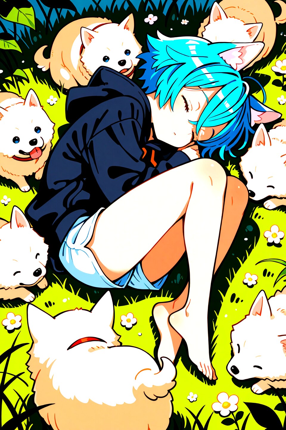 jacket partially removed, heart in eye, burnt clothes, holding fishing rod, kanji, doujin cover, pentagram, tape gag, adjusting headwear, red socks, friends, cloud print, coke-bottle glasses, oral invitation, competition school swimsuit, barbell piercing, gradient legwear, prisoner, blood on breasts, wind chime, carrying over shoulder, tape measure, flaming weapon