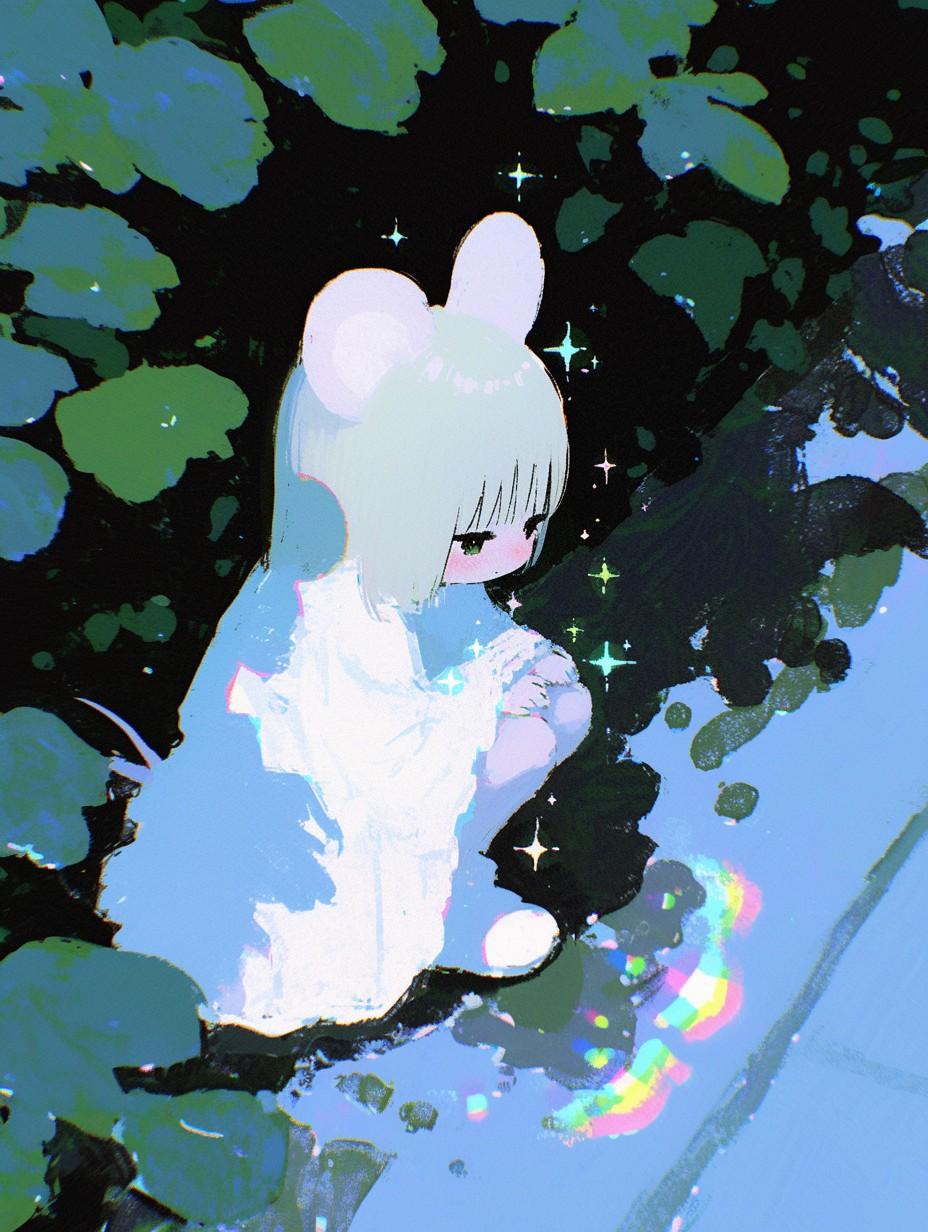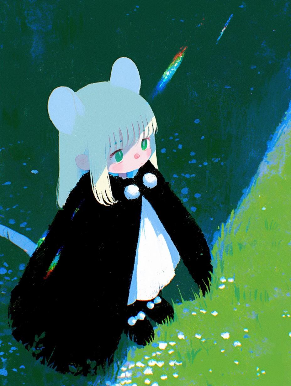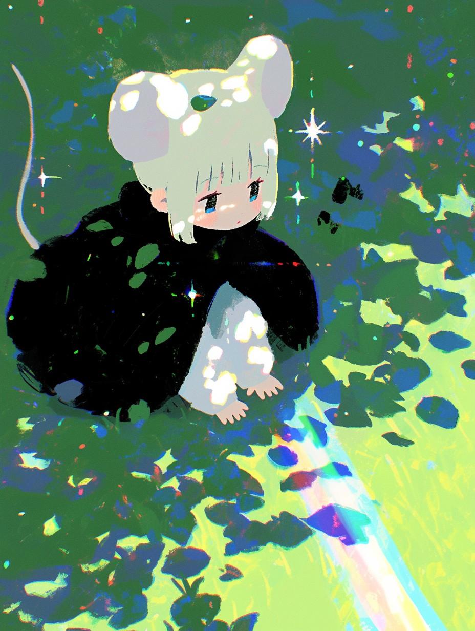 nijijourney限定とのことでしたが、普段からnijiを使っているので、虹をテーマにねず耳ちゃんを作る形にしました🤔