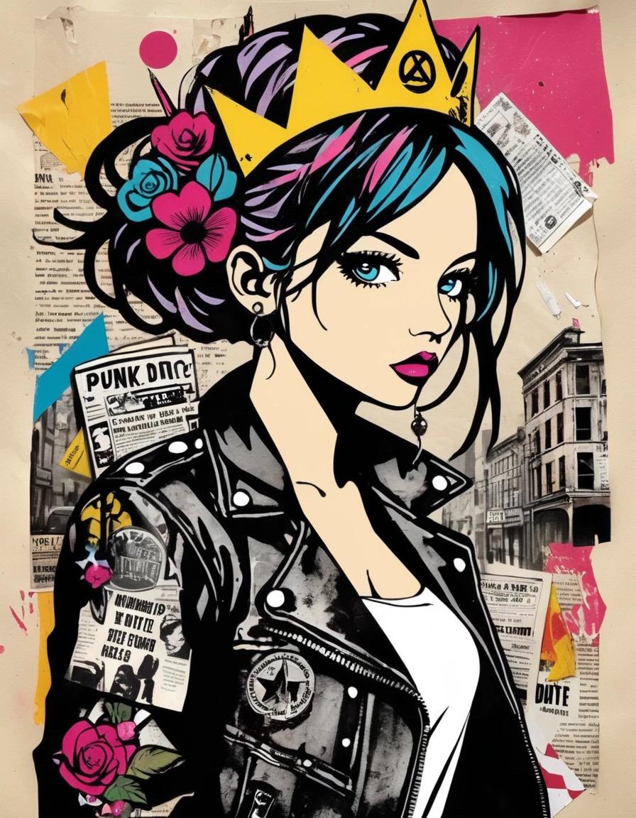 その歌詞を使い、FooocusのStylesから"MK Punk Collage"を混ぜてできたのが1〜4枚めです。
