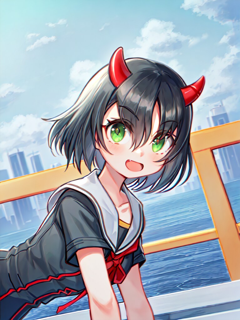 前に自分で描いた「へんたつ」の鬼を、Stable Diffusionで色々加筆したものから、個別にチョイスしました。