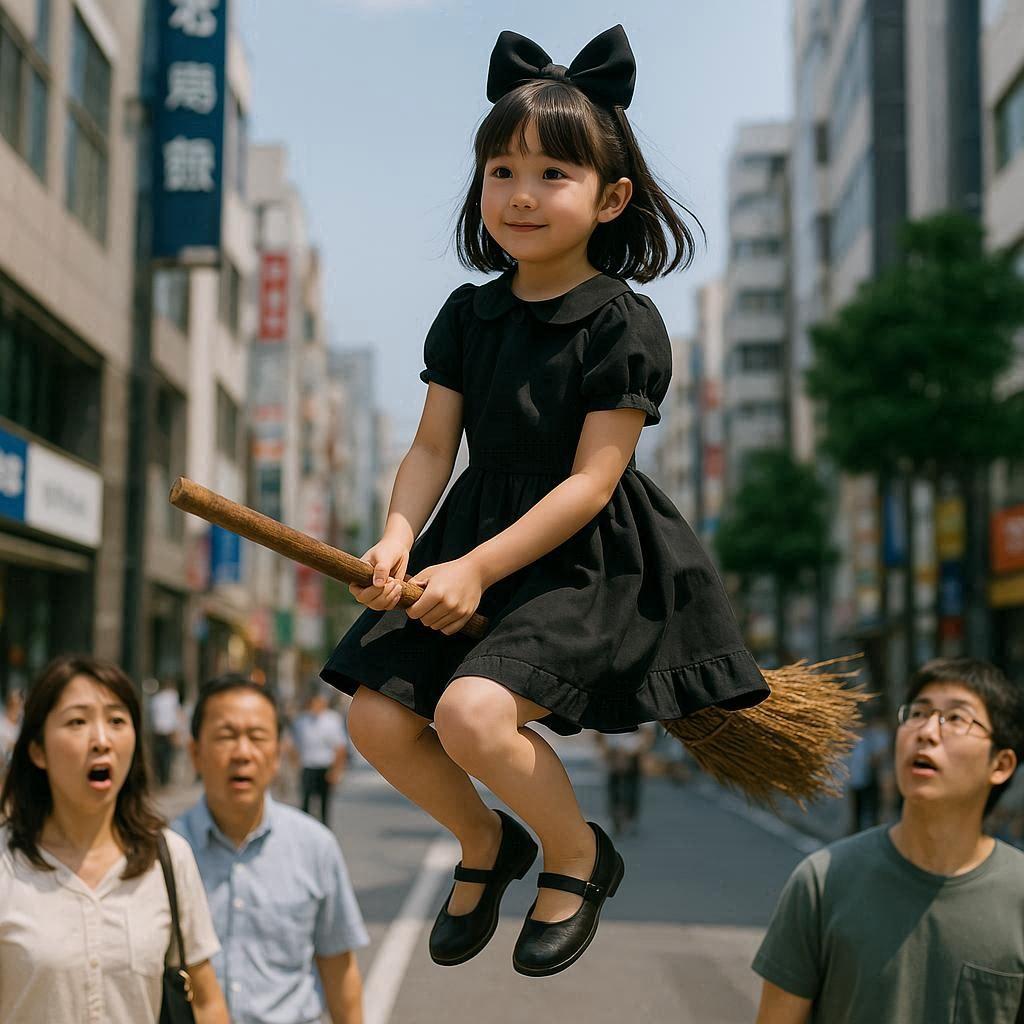 (魔女の正装で初飛行おめでとうございます。(3枚目はDalle先生です))(*^^)v