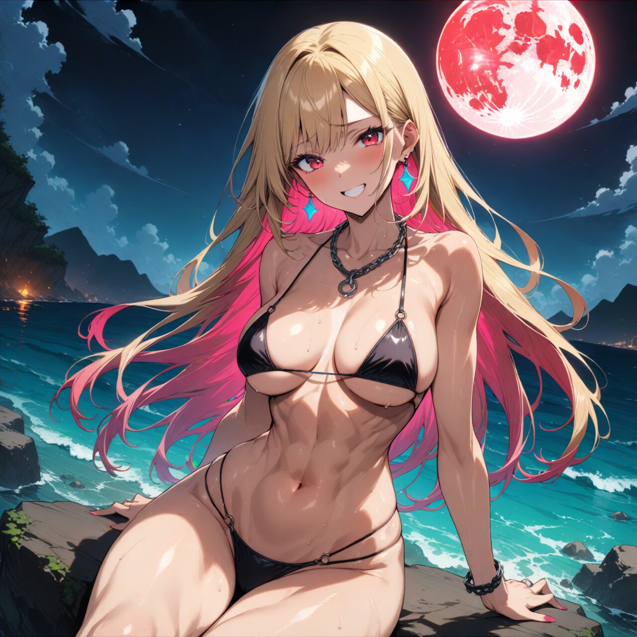 夜の海辺で