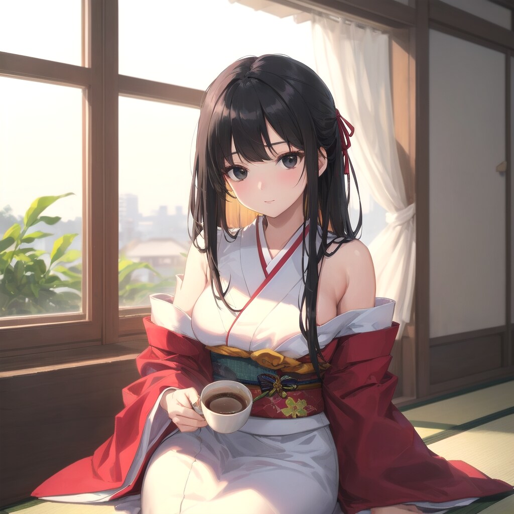 朝の光が障子越しに差し込み、鈴音さんは旦那さんが使ったカップを片手で包む。
