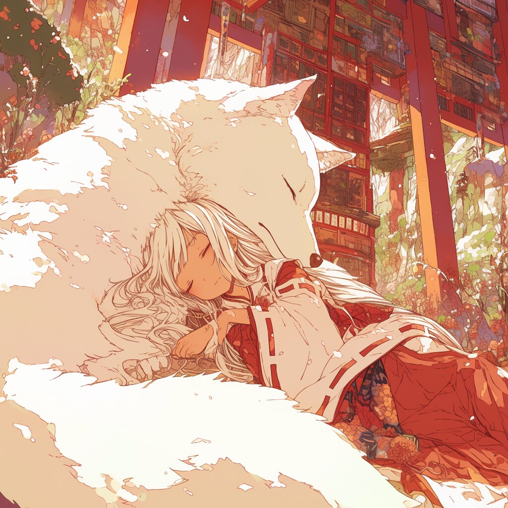 白狐とお昼寝