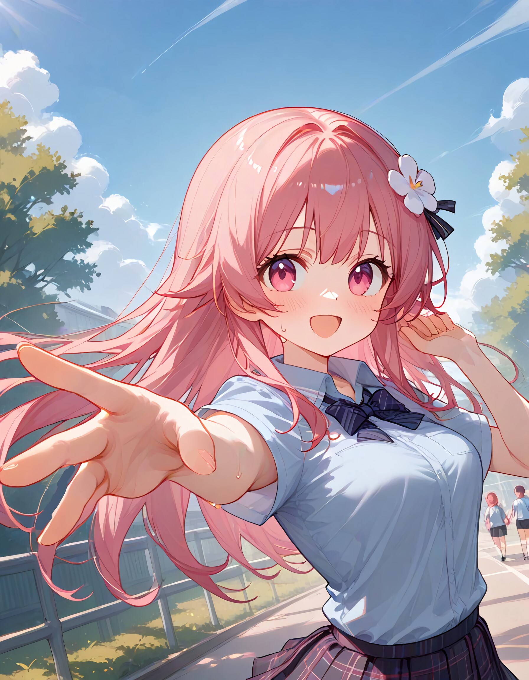 真夏の朝、学校の登校日というイメージで作成してみました。