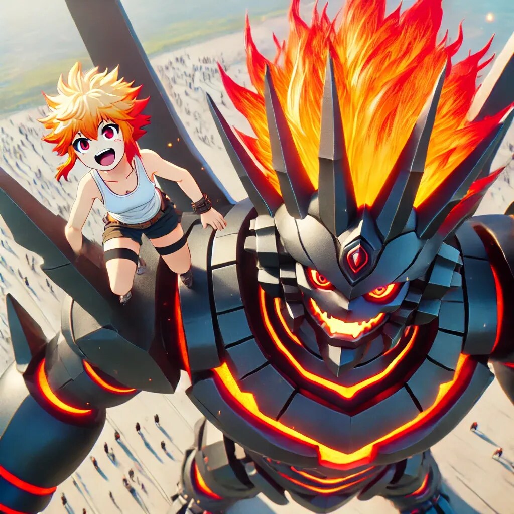 ヒュロッキンがスルトの巨体によじ登っていた。