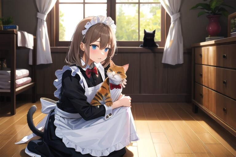 4枚目 1girl,cat,maid