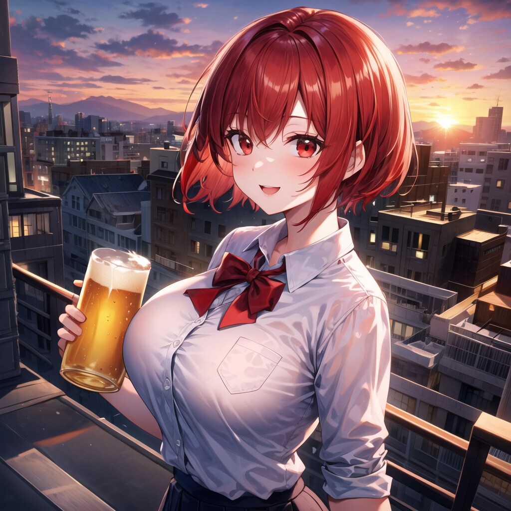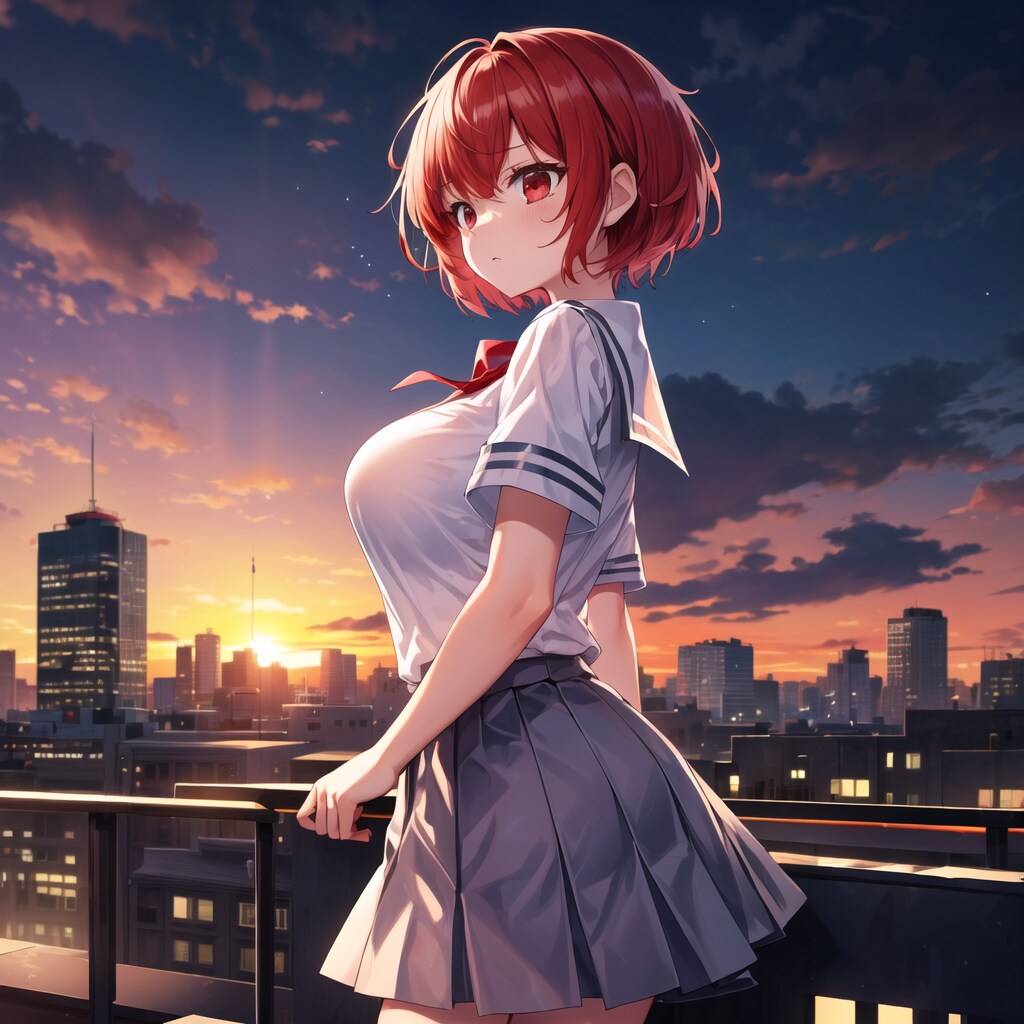 屋上で黄昏るガテンちゃん、一人でどうしたのでしょうか?