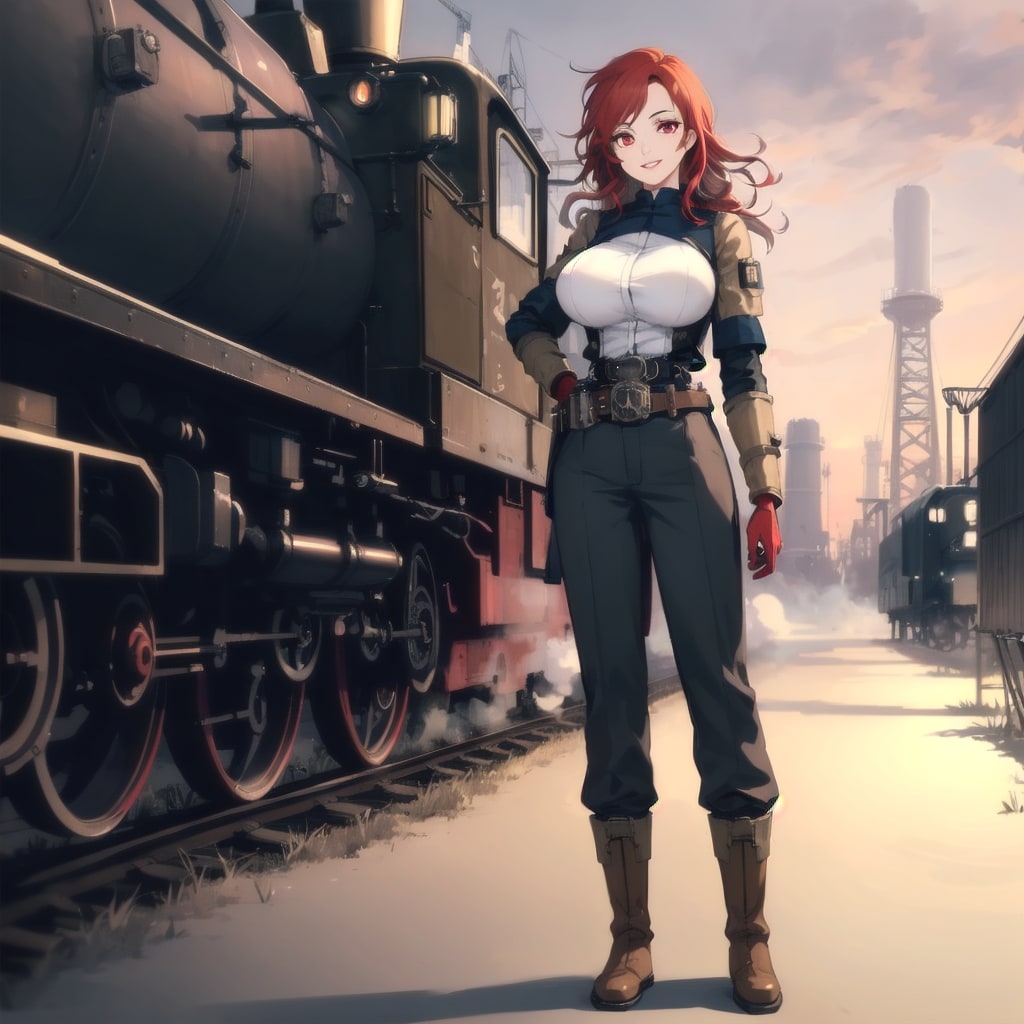 蒸気機関車を操縦する機関士の女の子