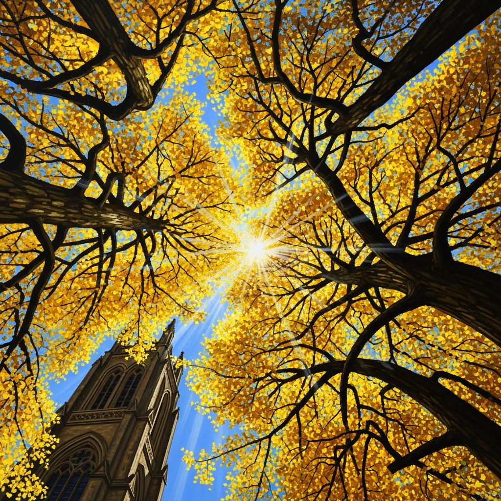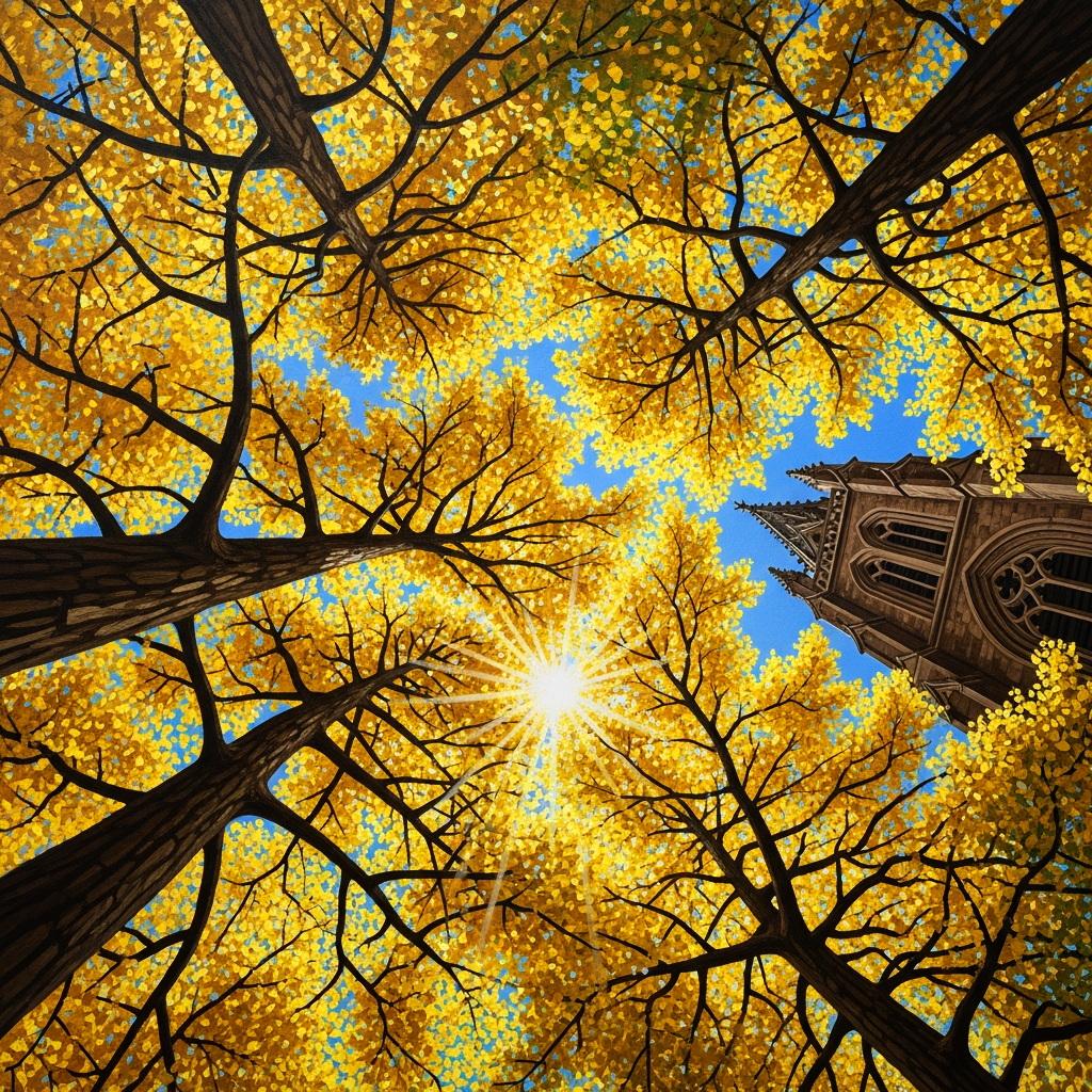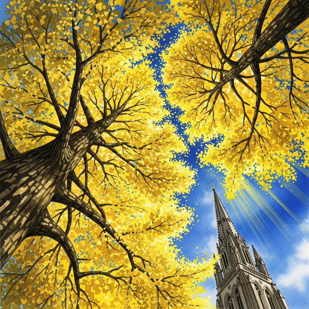 青空にそびえ立つ銀杏