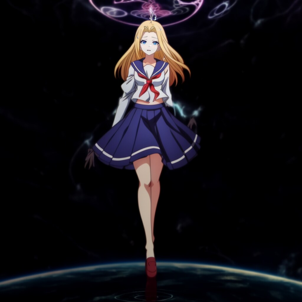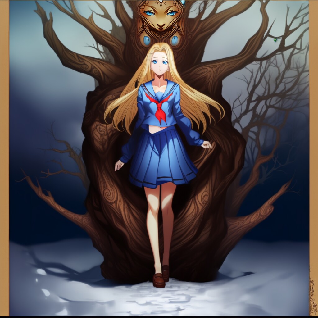 学生服という普段の装いが、彼女のファンタジーの世界での魅力を引き立てています。その学生服姿が彼女の個性や魅力をより際立たせ、読者を魅了することでしょう。