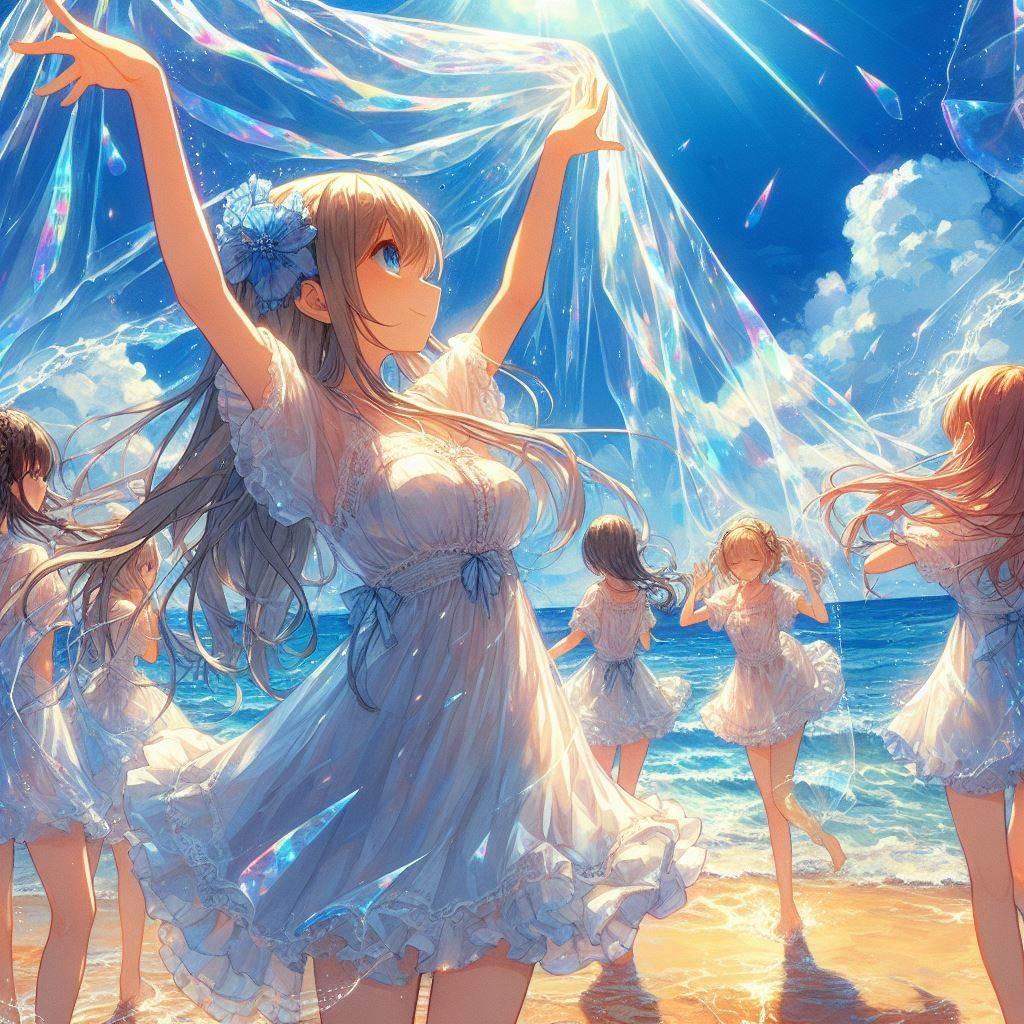 美波と呼ばれた少女は、他の友達に比べてやや背が高く、翼を広げた白鳥のような風格があった。彼女の笑顔は太陽と競うかのように耀いており、その笑顔はたちまち仲間たちに伝染していった。美波の動きに合わせて他の少女たちも力を合わせ、この青と白い世界を自らの舞台にするかのようにヴェールを操る。