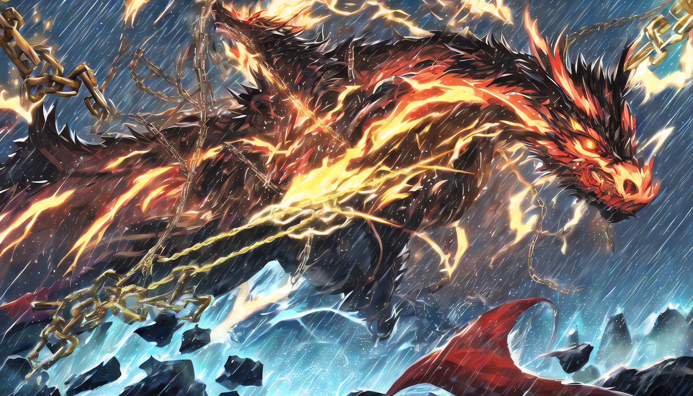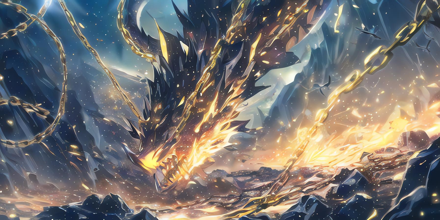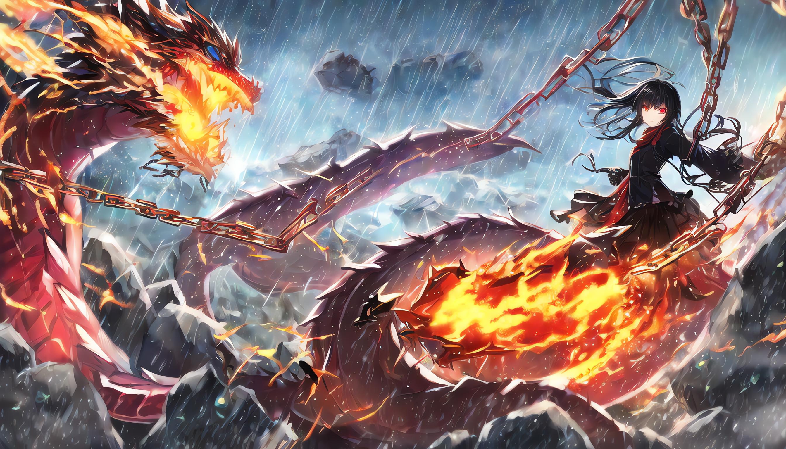 彼女はその隙をつき、再び竜に向かって飛び込み、竜の全身を鎖で締め上げた。