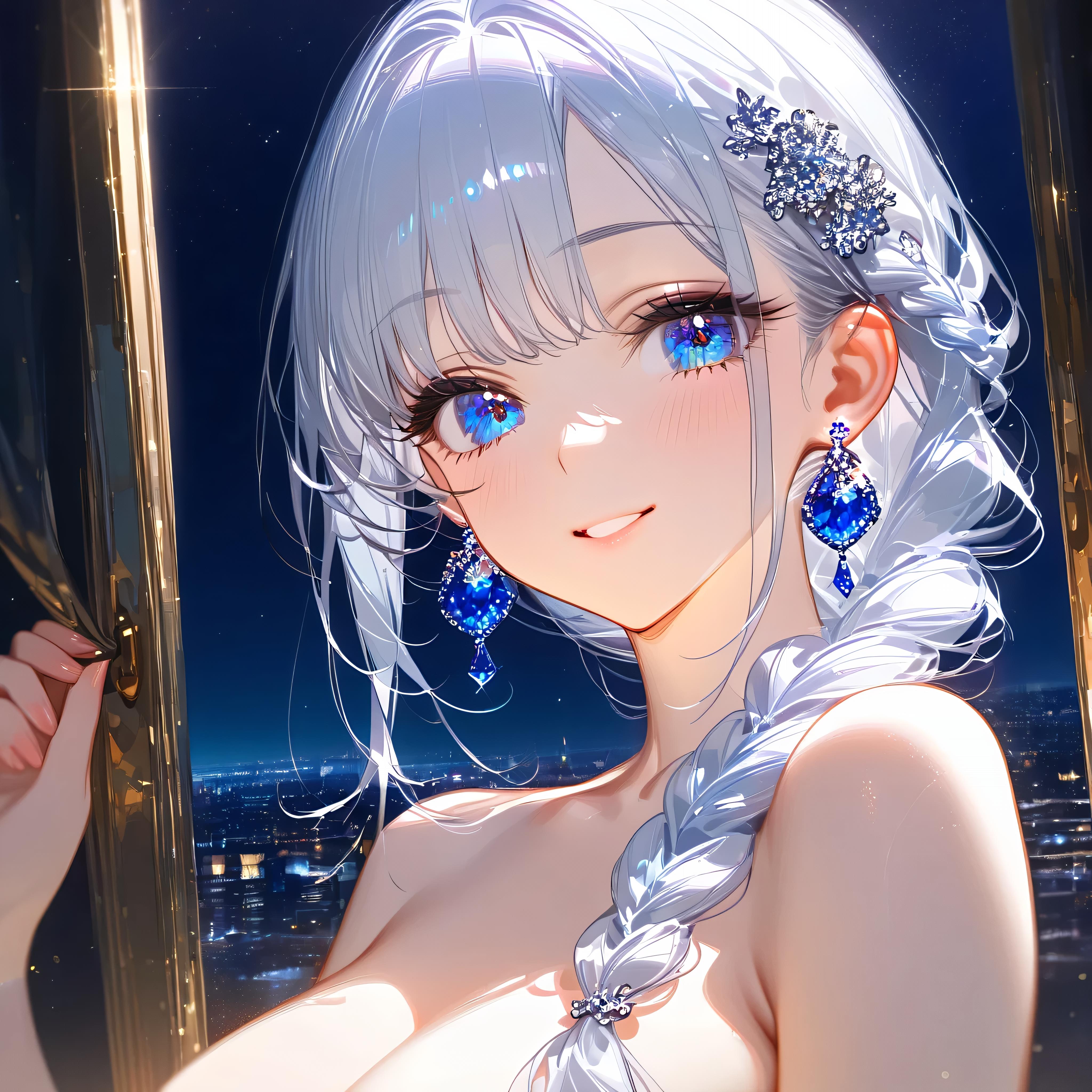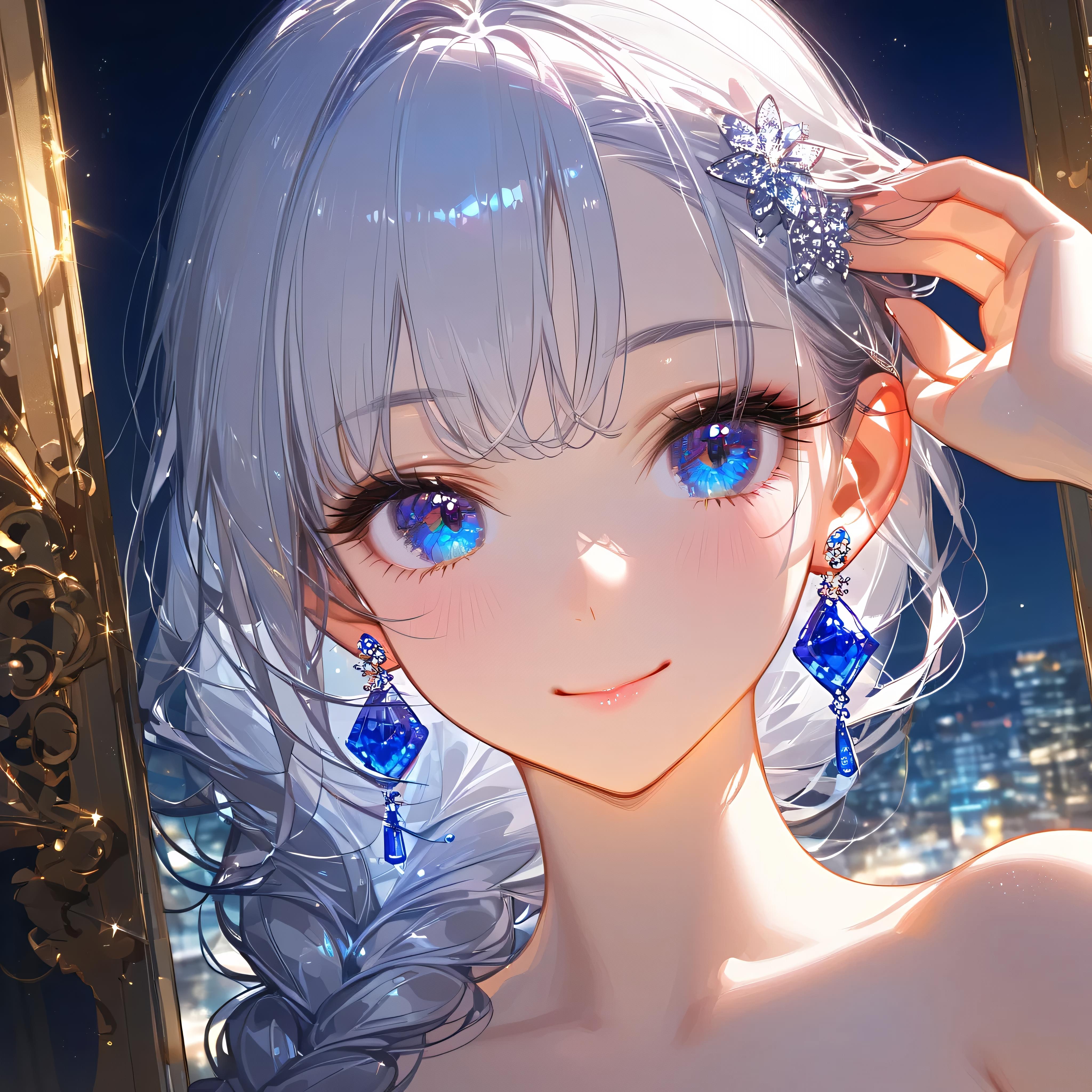こだわったのは色です。深い青を表現したくて瞳とイヤリングの色を調整しました。
