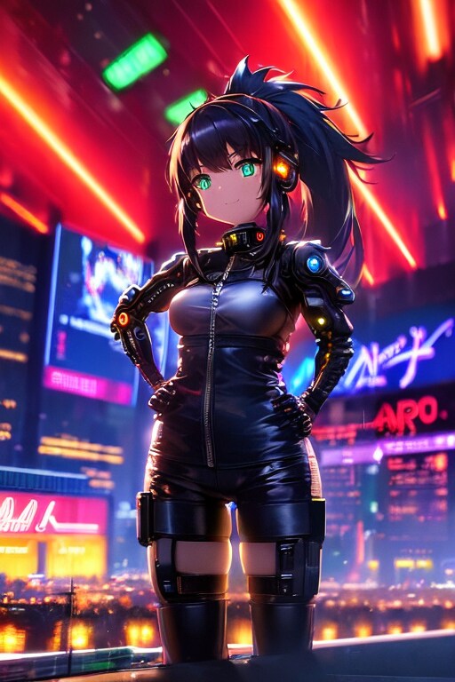 NMKD生成テスト(LoRA無、512x768)+お題テスト(サイバーパンク)