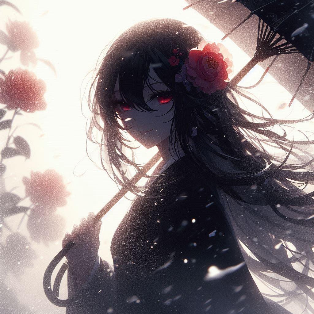 雪と傘のツバキさん