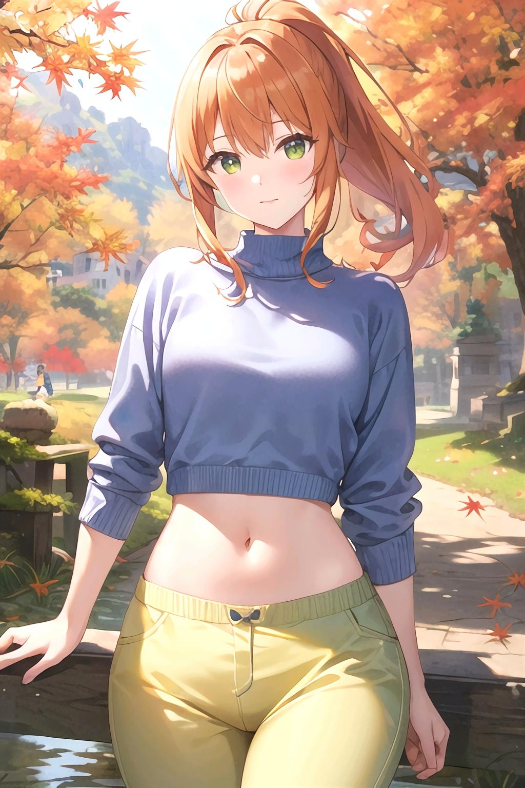 normal chest,orange hair,short ponytail,yellow green eye,turime