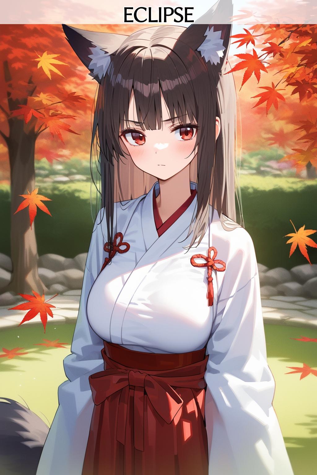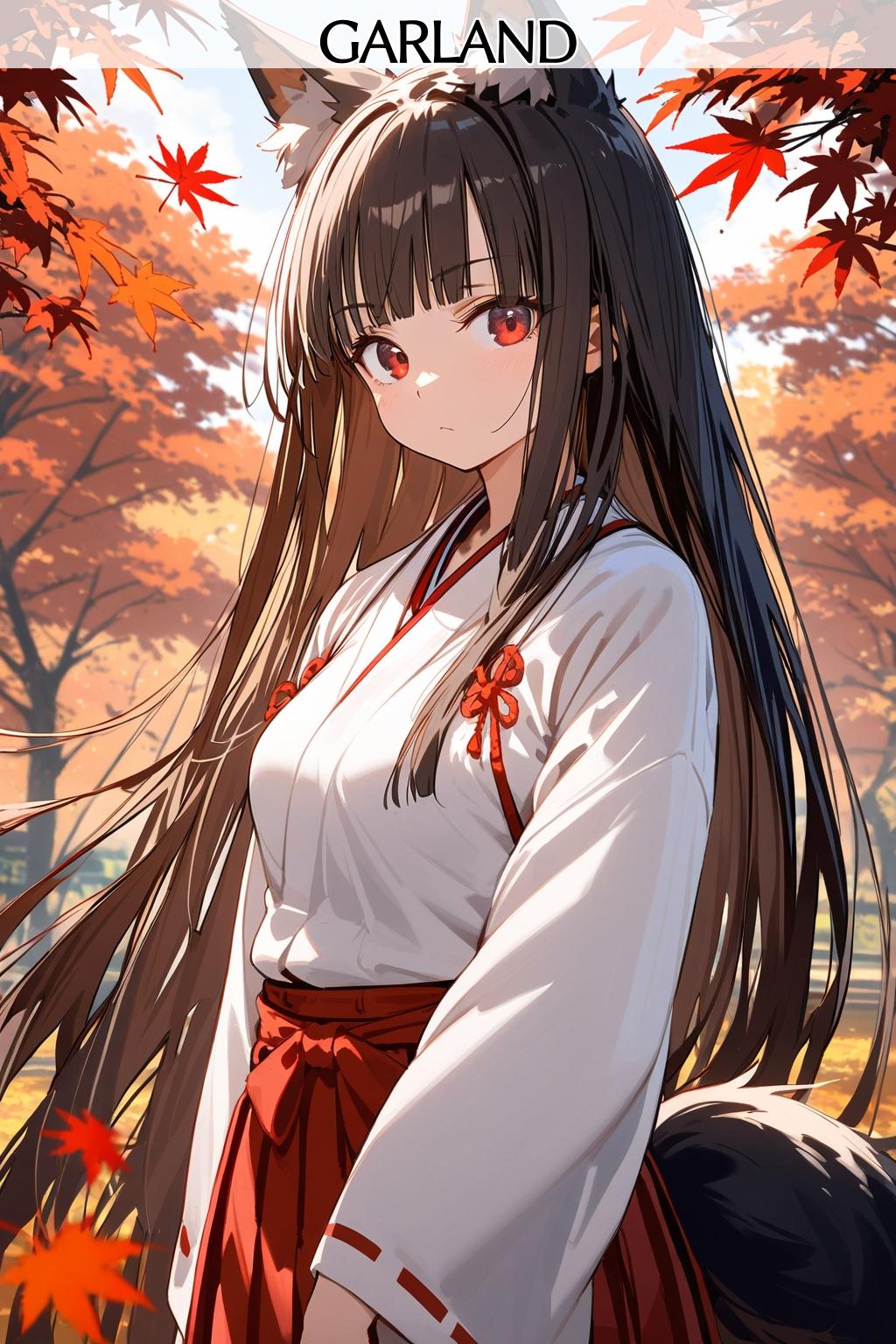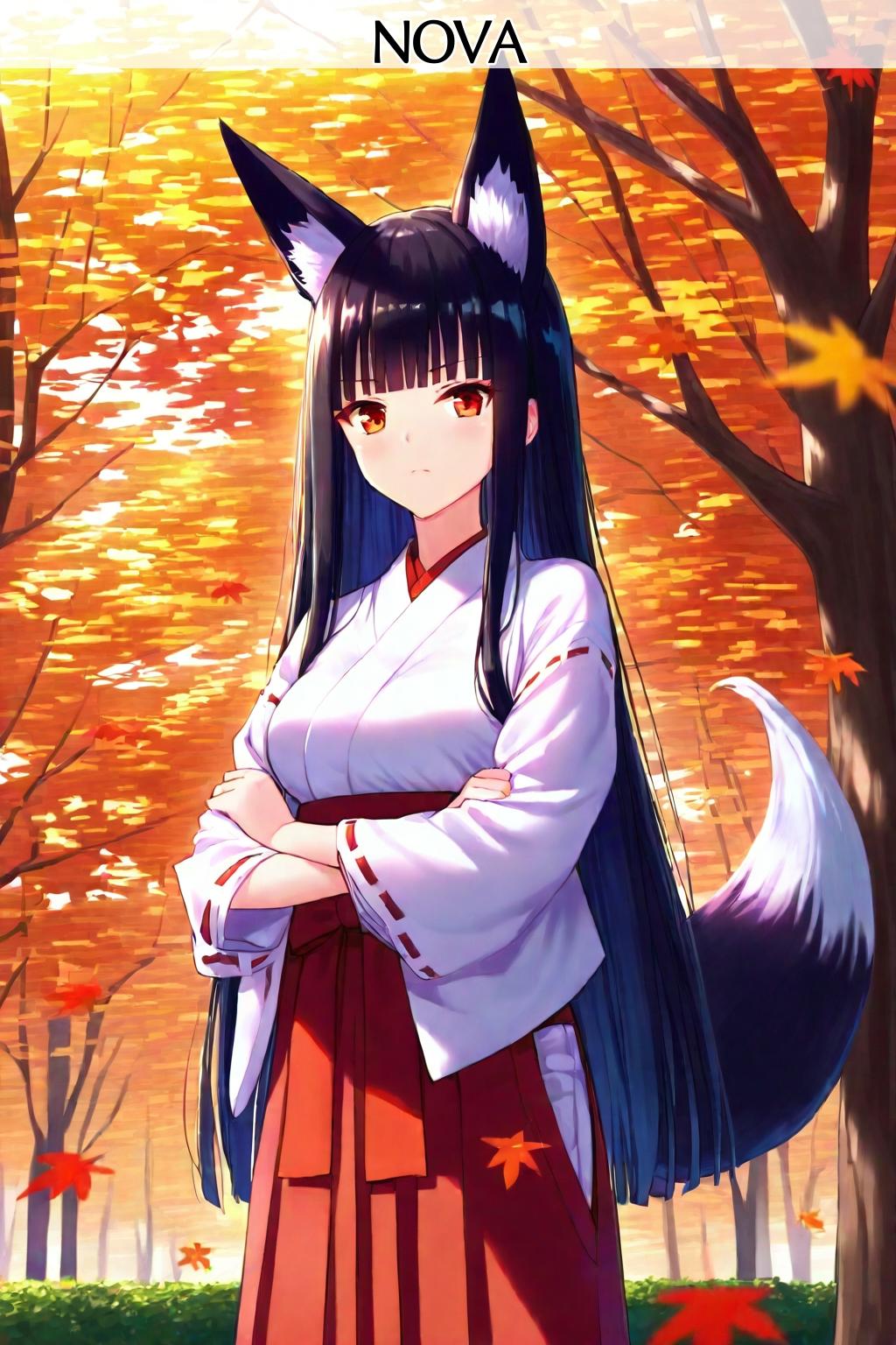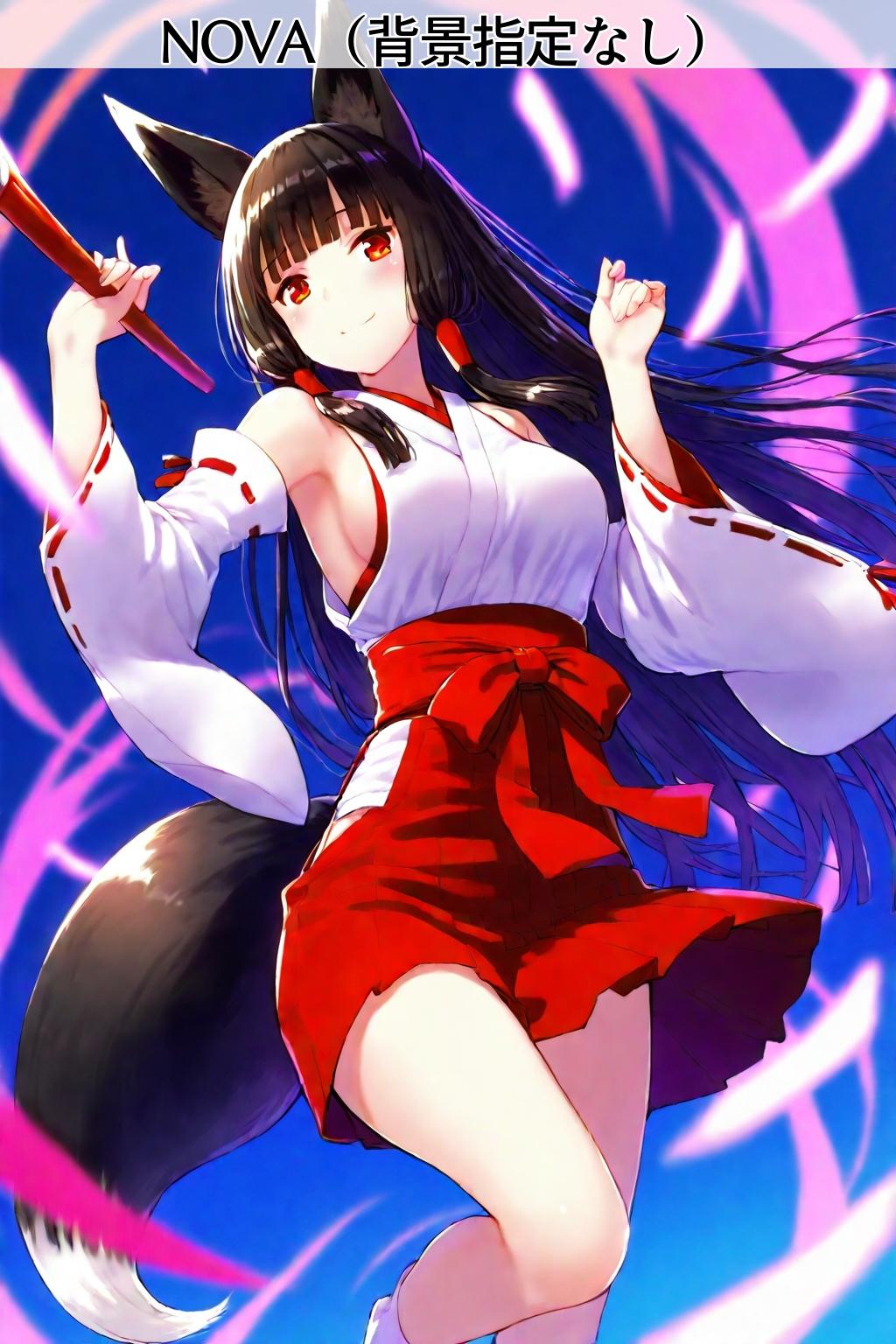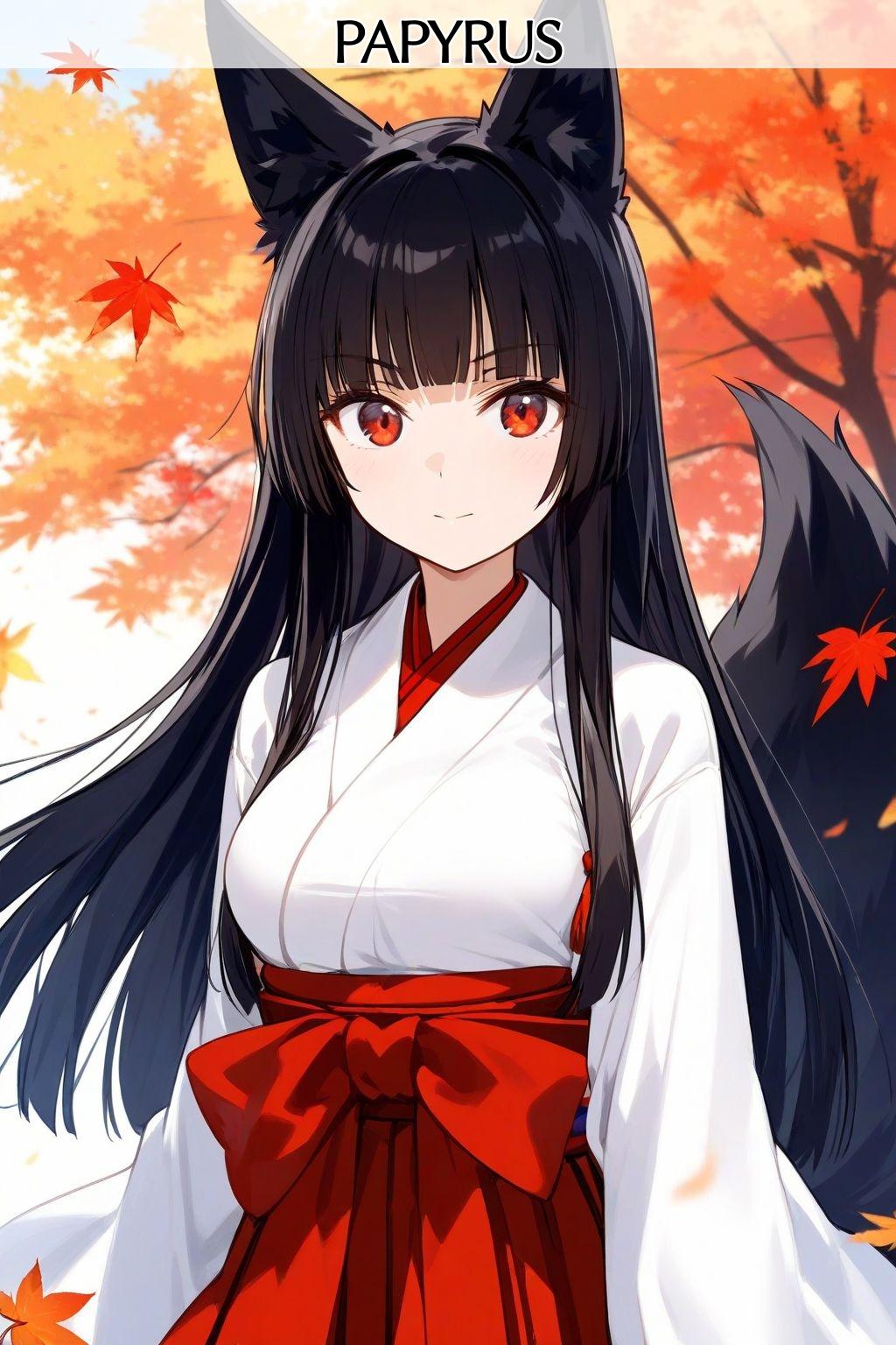 「黒髪狐巫女:2枚目以降は Pony(StableDiffusionXL)」