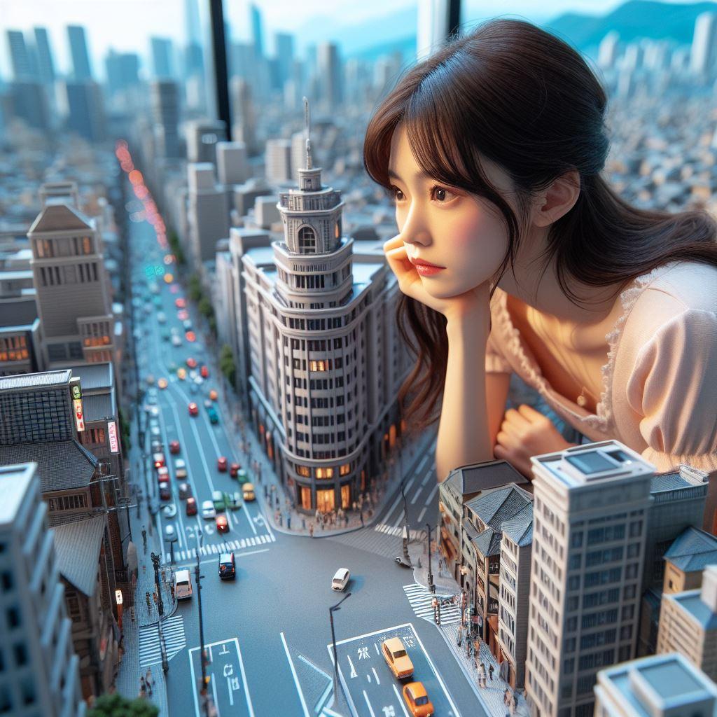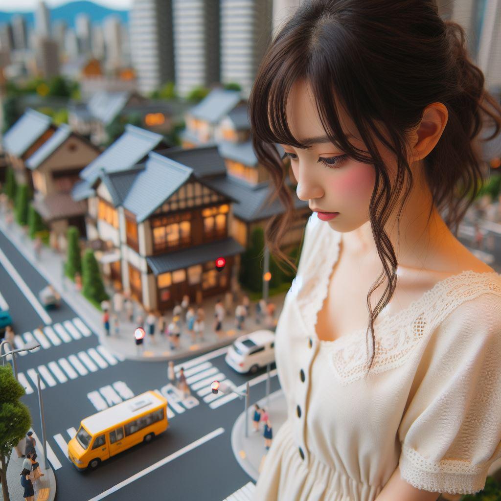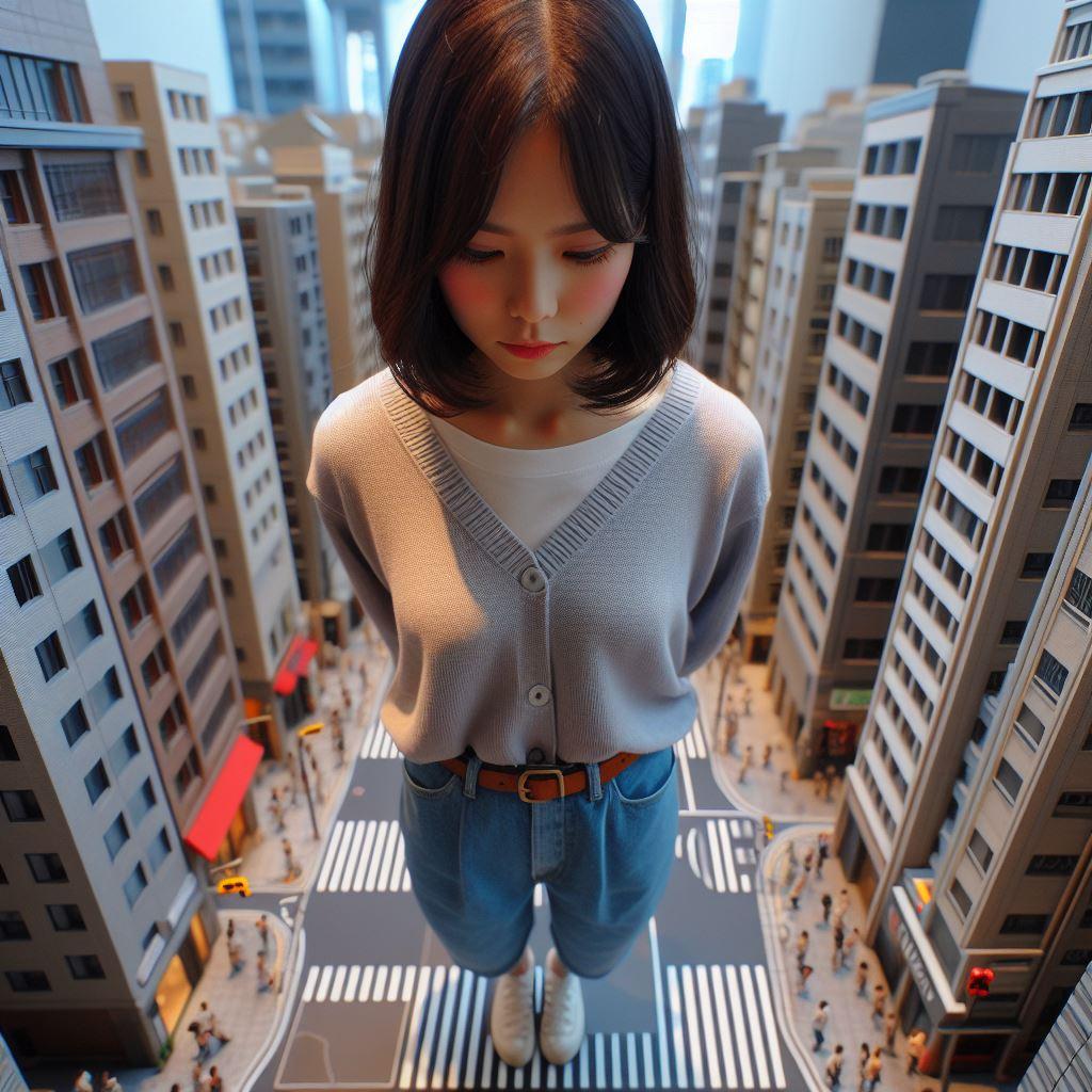 巨大化した女性を生成したかったのですが私にはちょっと無理でした