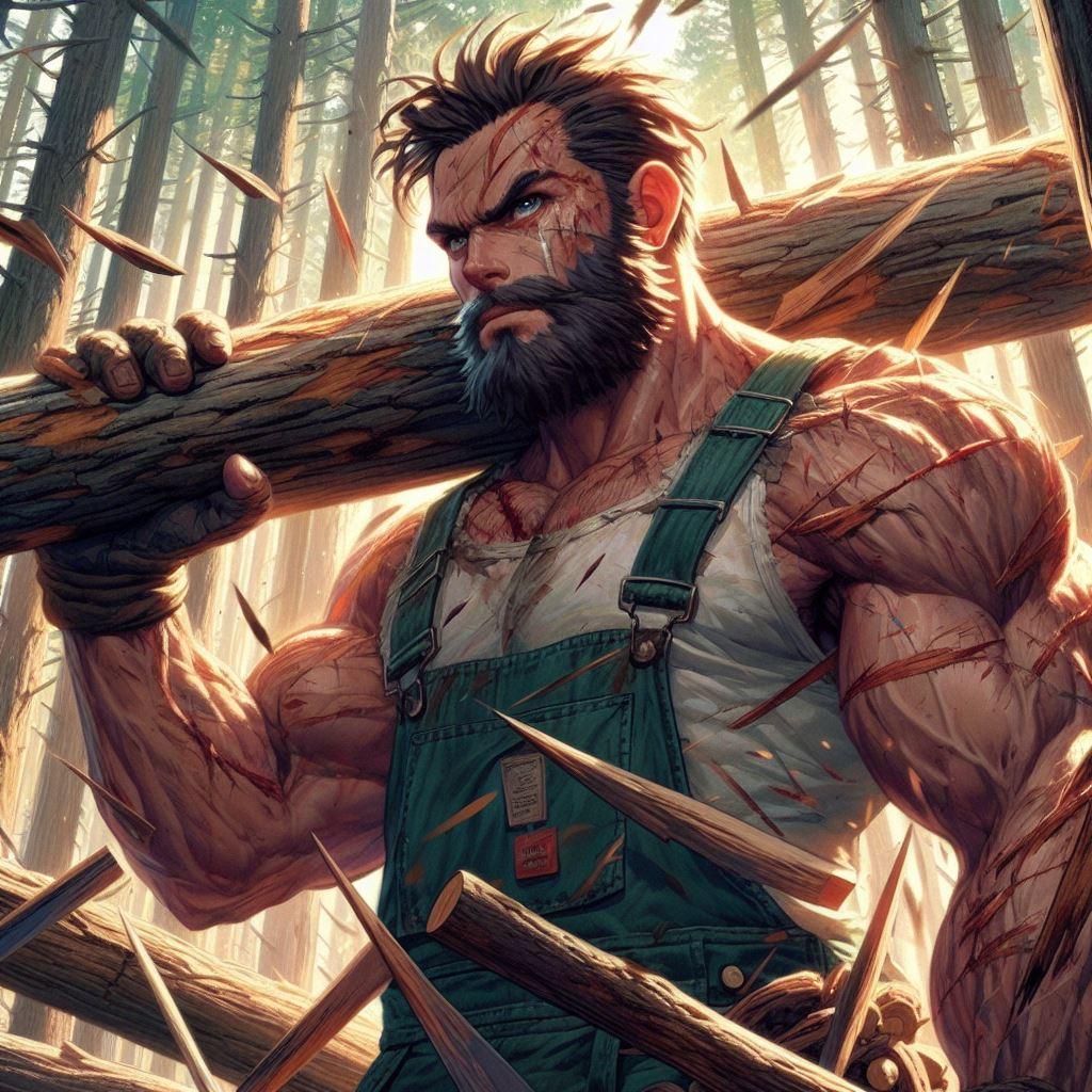 トレーニングはどうするのか?木こりは自然そのものがトレーニング場さ、そして木こりの仕草が筋肉のトレーニングになるんだ。俺の体を見てみろ!木こりとして木を伐採し続けた結果がこれよ!