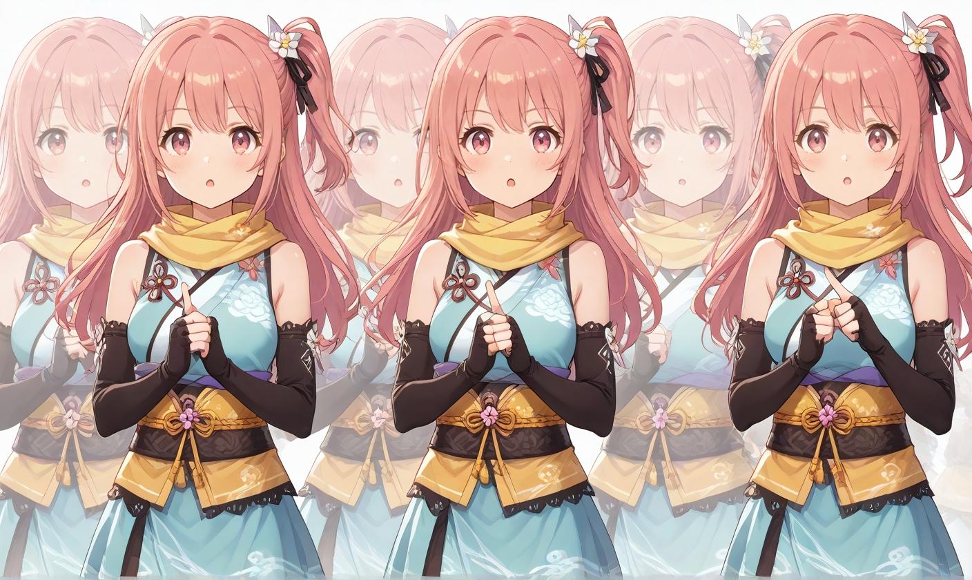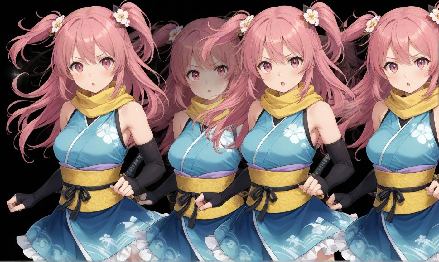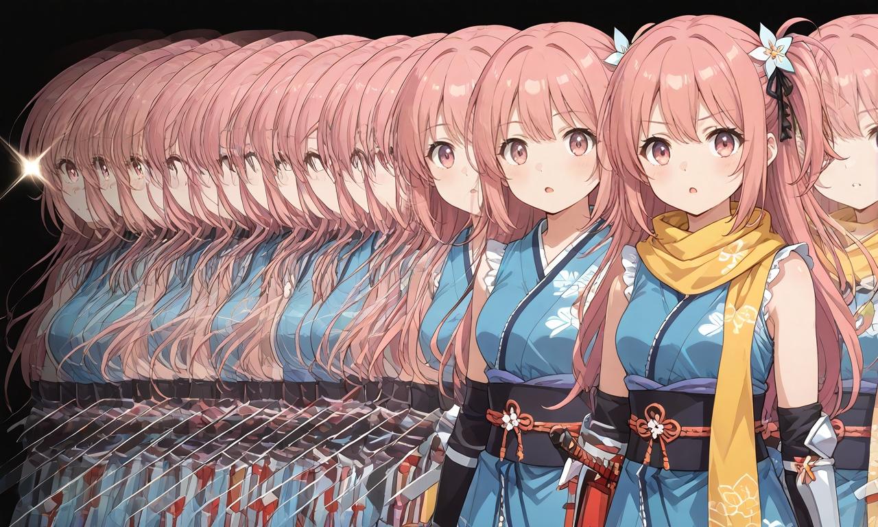 そして、ようやくプロンプトのみで分身っぽい(?)のができました。が、かなり強調が必要なのでいろいろ破綻してますのでそのあたりは大目に…。