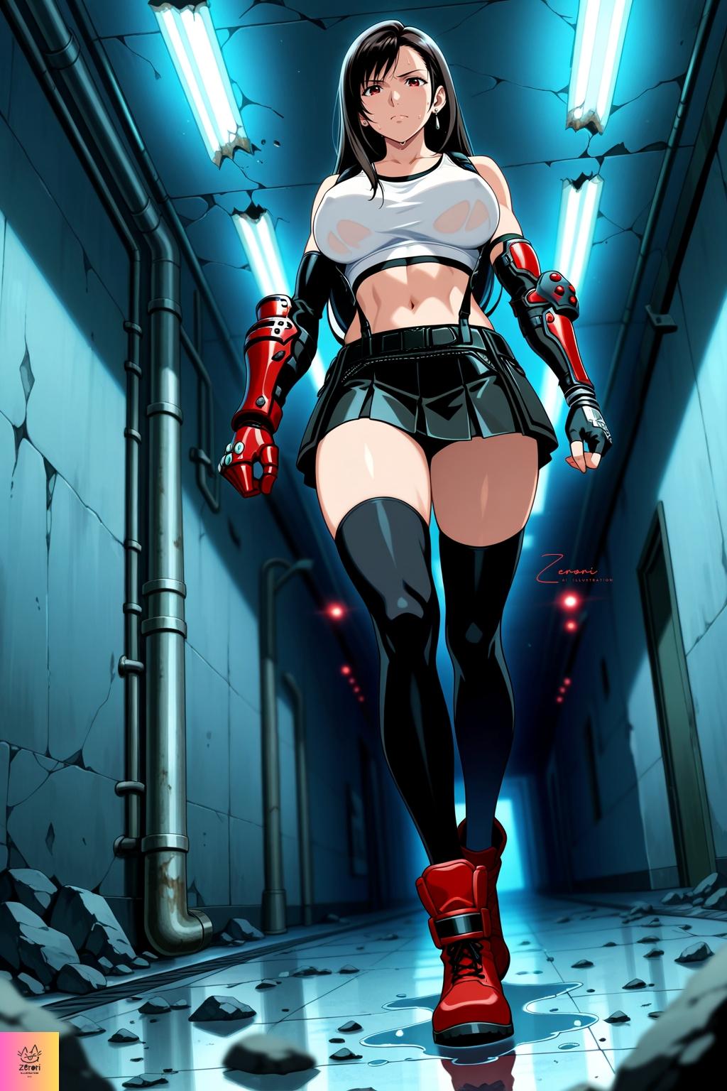 Tifa was walking alone down a dimly lit hallway.