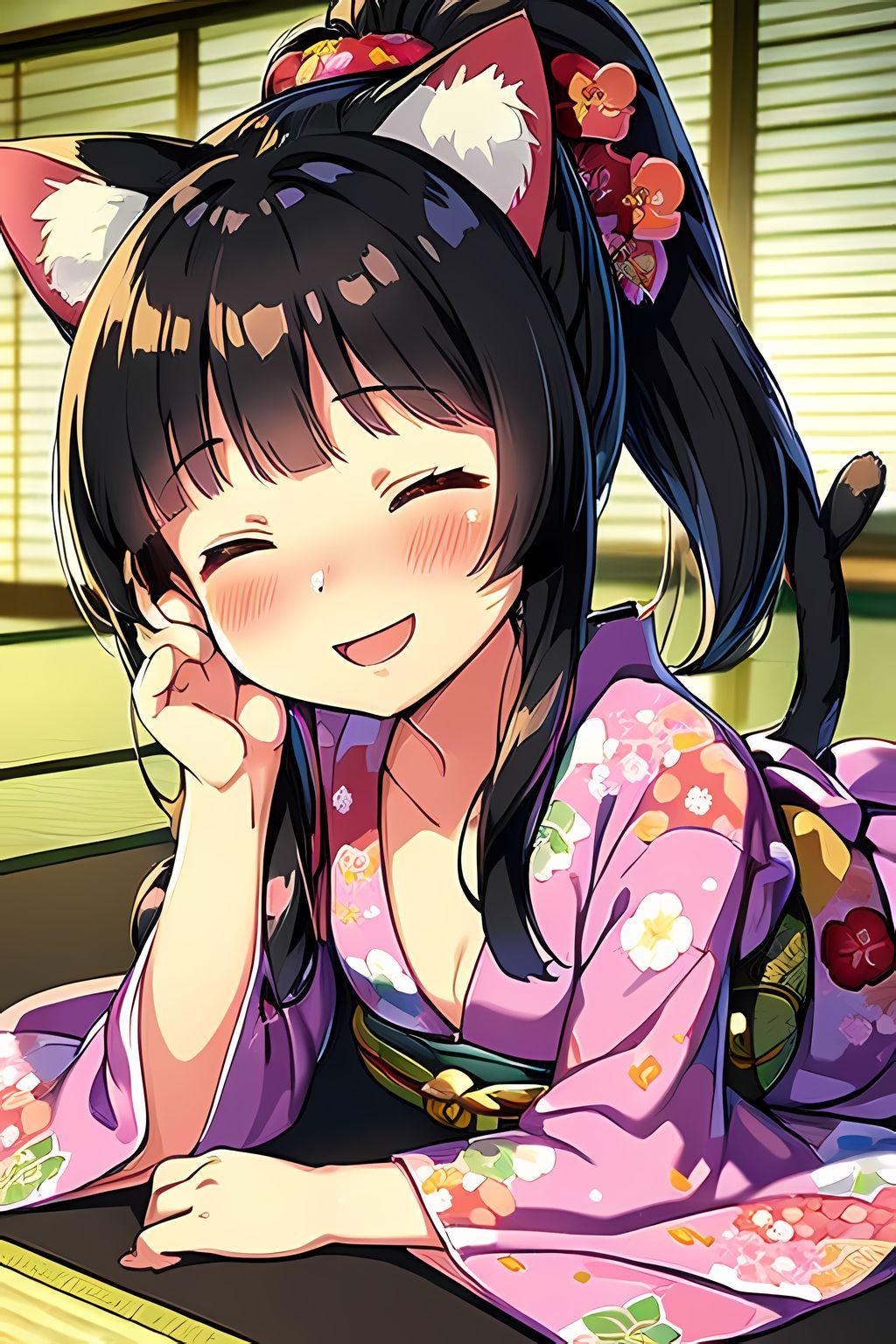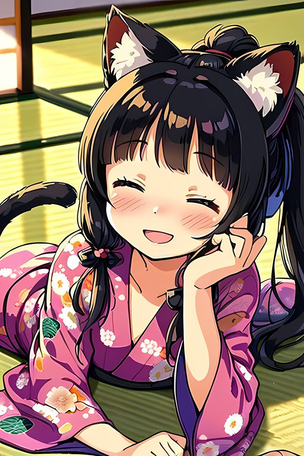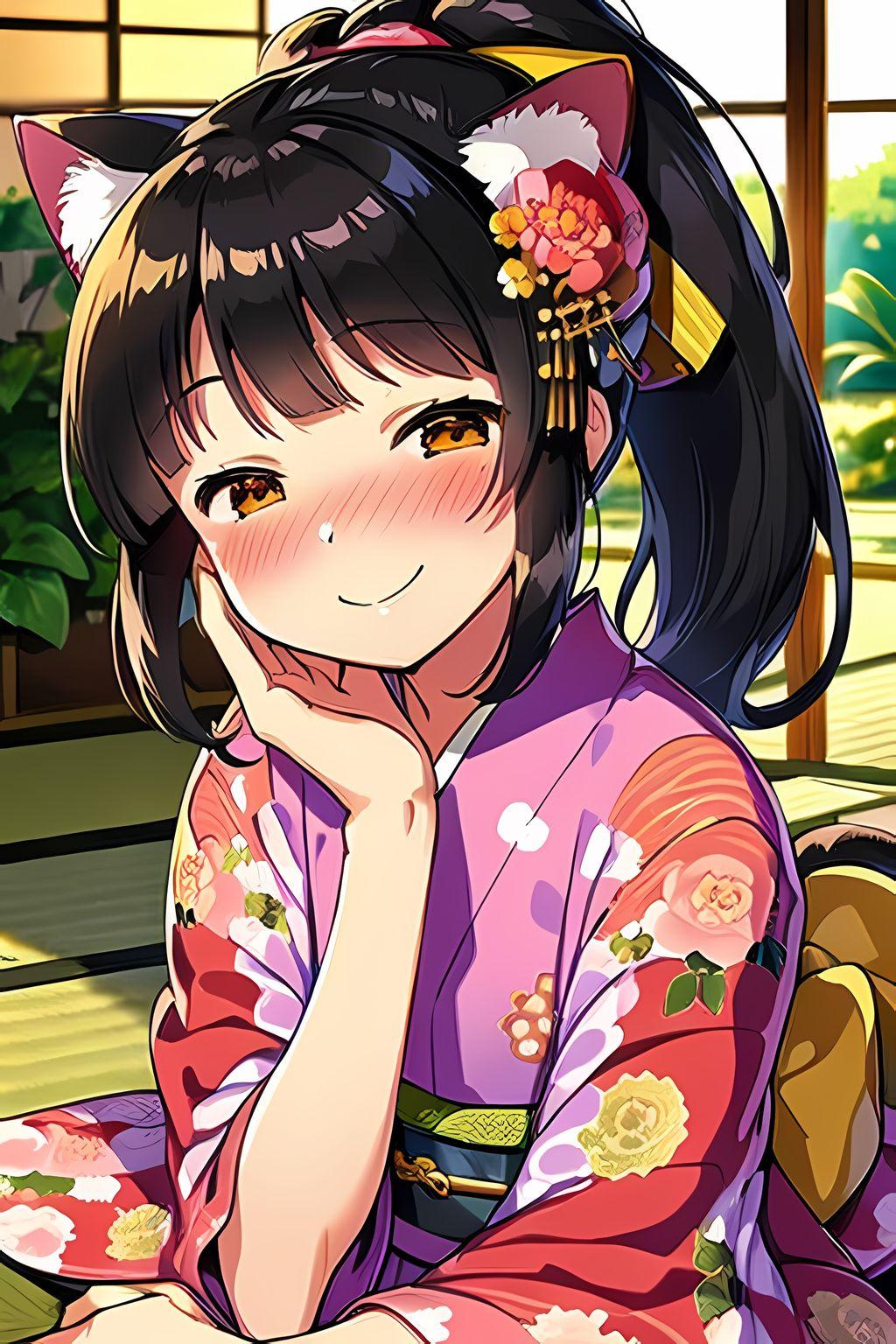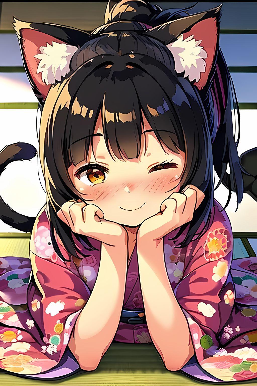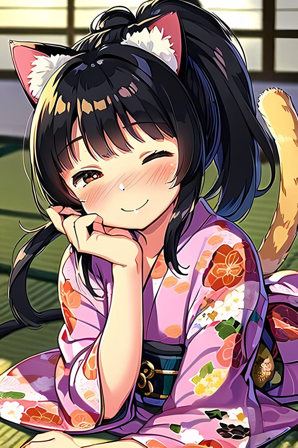 夏目漱石の「吾輩は猫である」よりインスパイアで和服な猫っ娘。