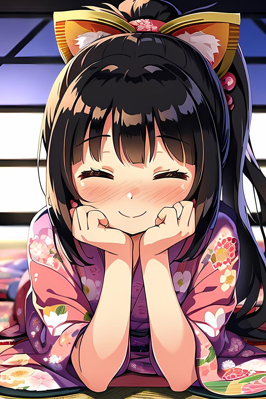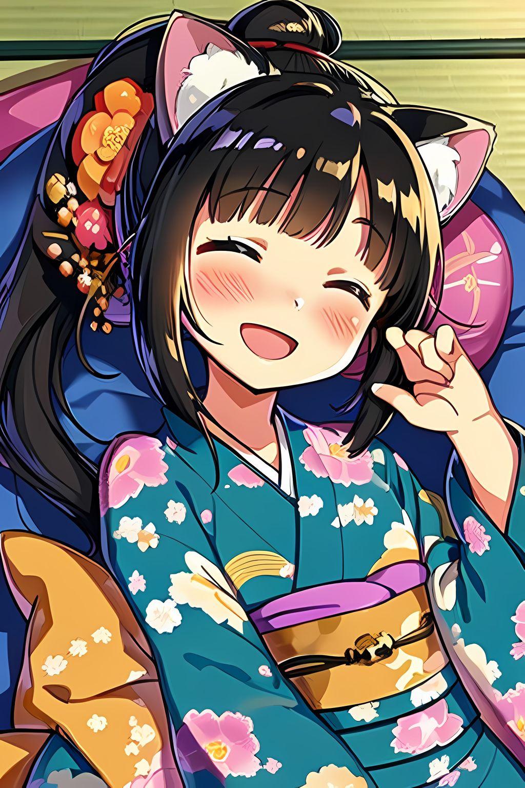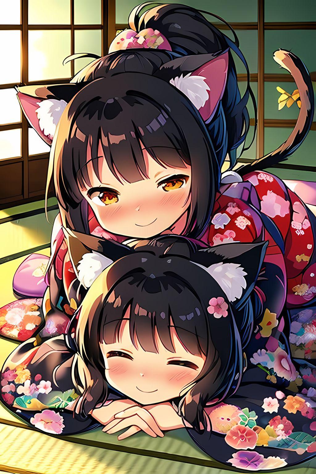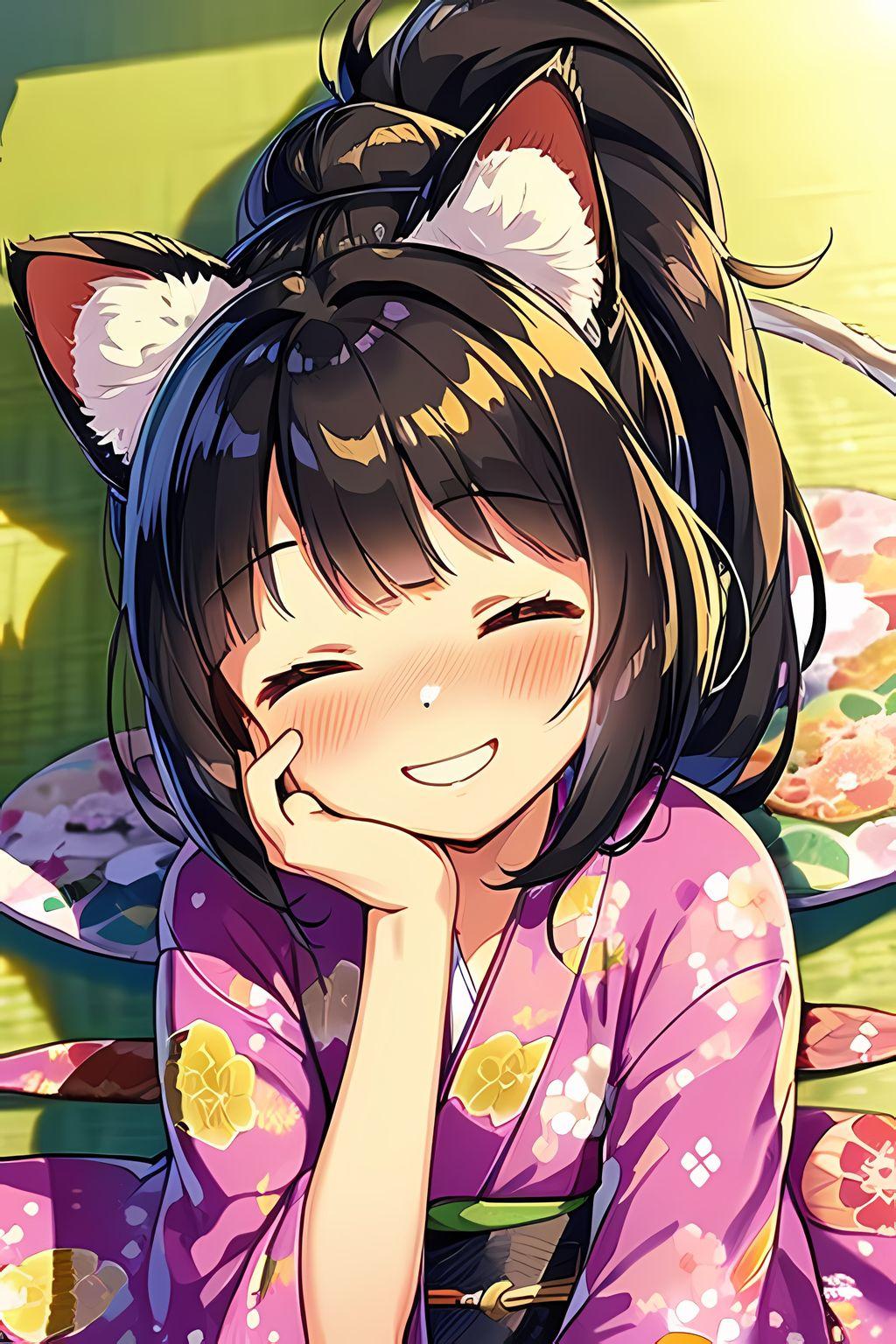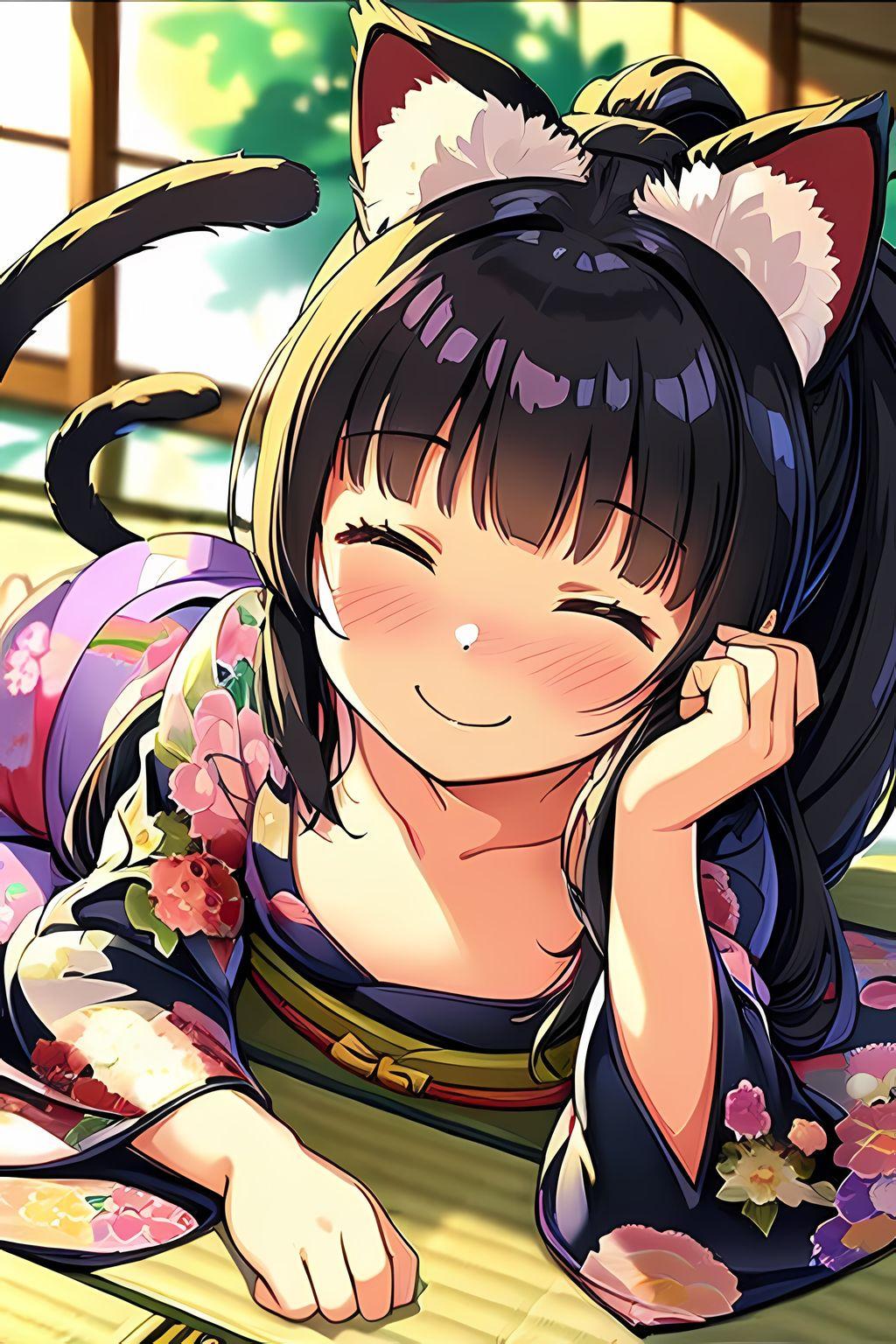 夏目漱石の「吾輩は猫である」よりインスパイアで和服な猫っ娘。